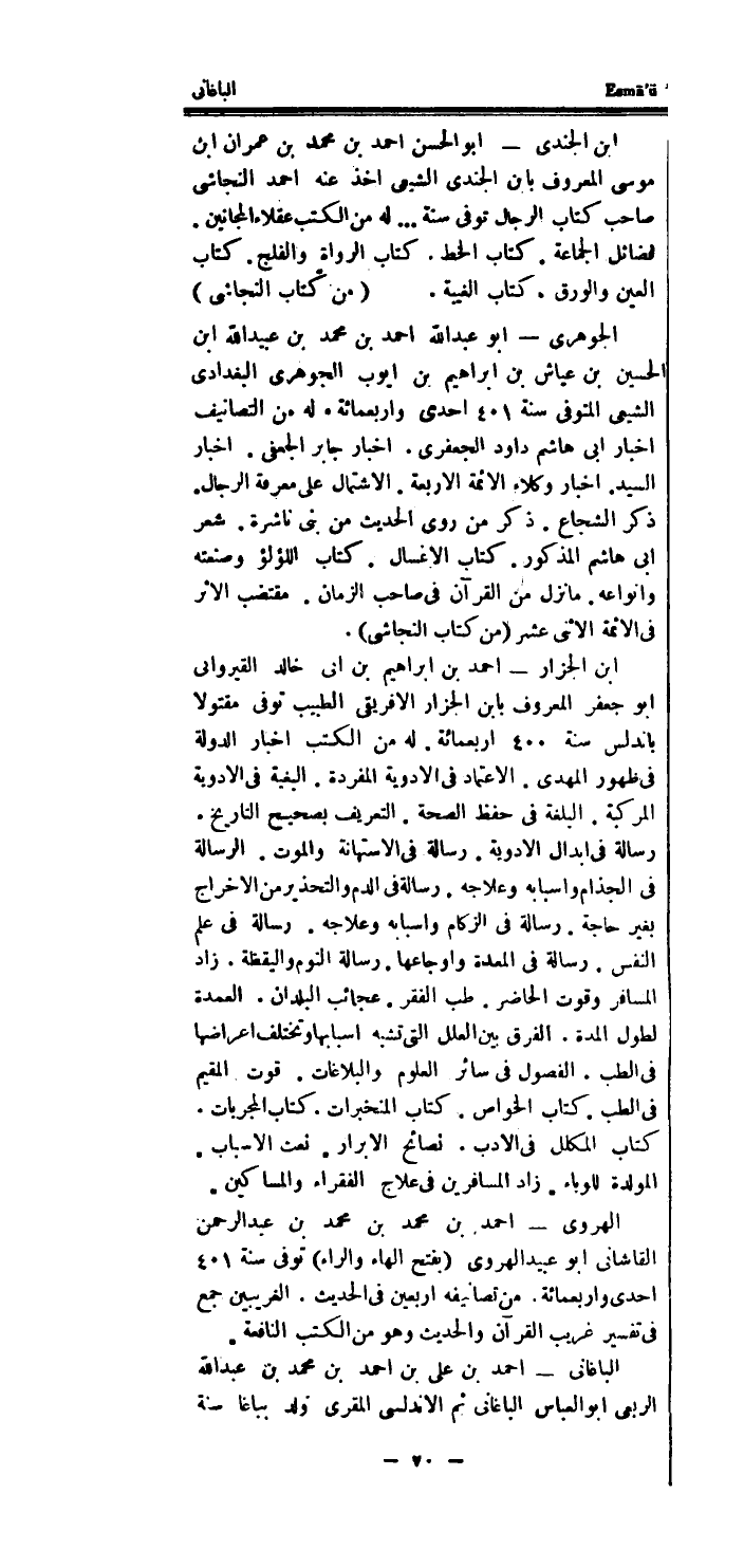 (من كتاب النَّجَاشِيّ) الجوهرى - أَبُو عبد الله احْمَد بن مُحَمَّد بن عبيد الله ابْن الْحُسَيْن بن عَيَّاش بن ابراهيم بن ايوب الجوهرى الْبَغْدَادِيّ الشيعي الْمُتَوفَّى سنة 401 احدى واربعمائة.