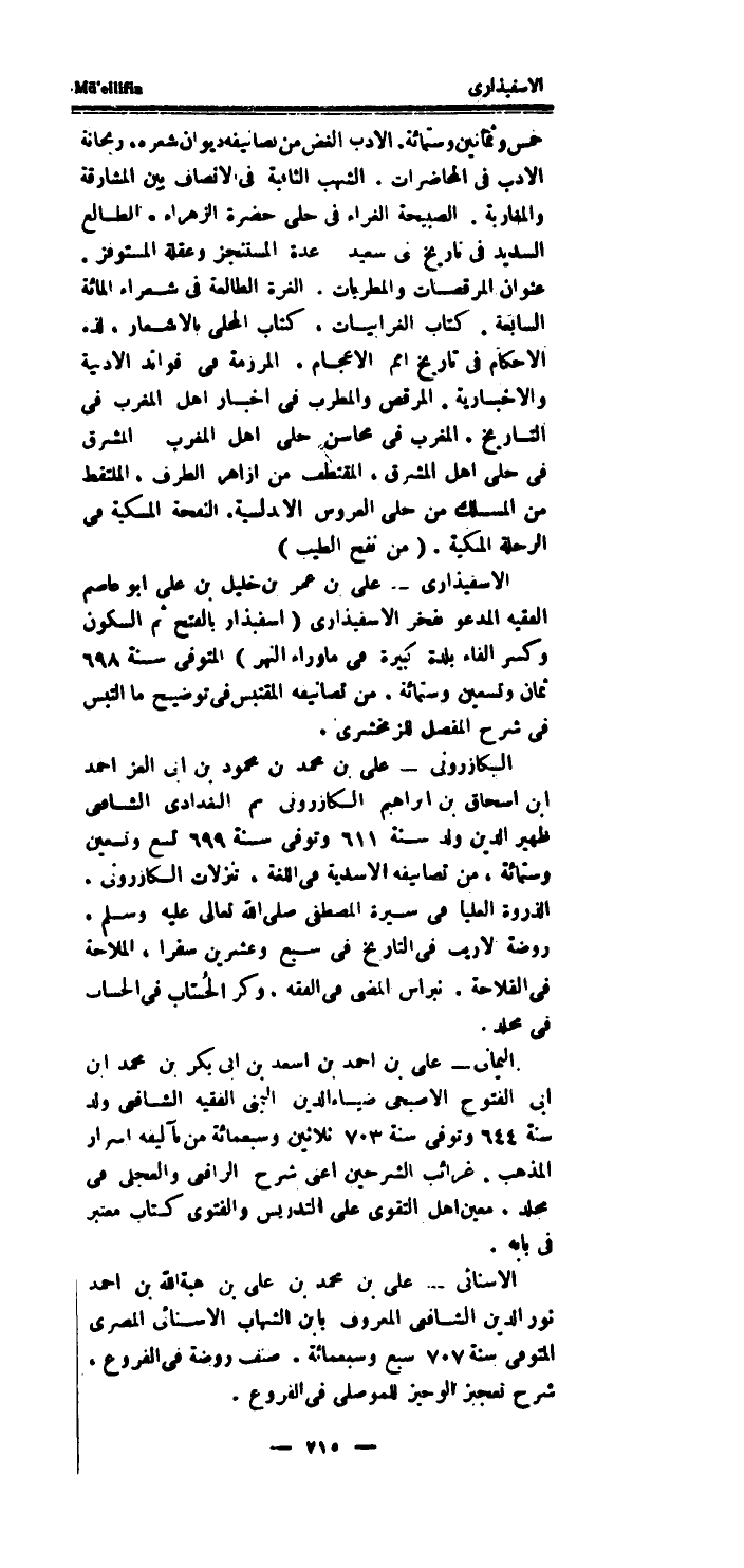 (من نفح الطّيب) الاسفيذارى - على بن عمر بن خَلِيل بن على أَبُو عَاصِم الْفَقِيه الْمَدْعُو بفخر الاسفيذارى (اسفيذار بِالْفَتْح ثمَّ السّكُون وَكسر الْفَاء بَلْدَة كَبِيرَة فِي مَا وَرَاء النَّهر) الْمُتَوفَّى سنة 698 ثَمَان وَتِسْعين وسِتمِائَة.