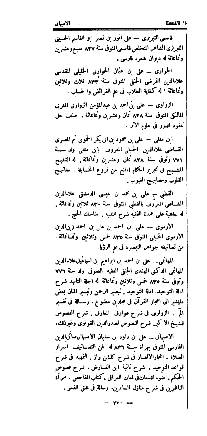 الاصبهاني - على بن دَاوُد بن سُلَيْمَان الاصبهاني صائن الدَّين الفارسى الْمُتَوفَّى بهراة سنة 836 لَهُ من التصانيف اسرار الصَّلَاة.