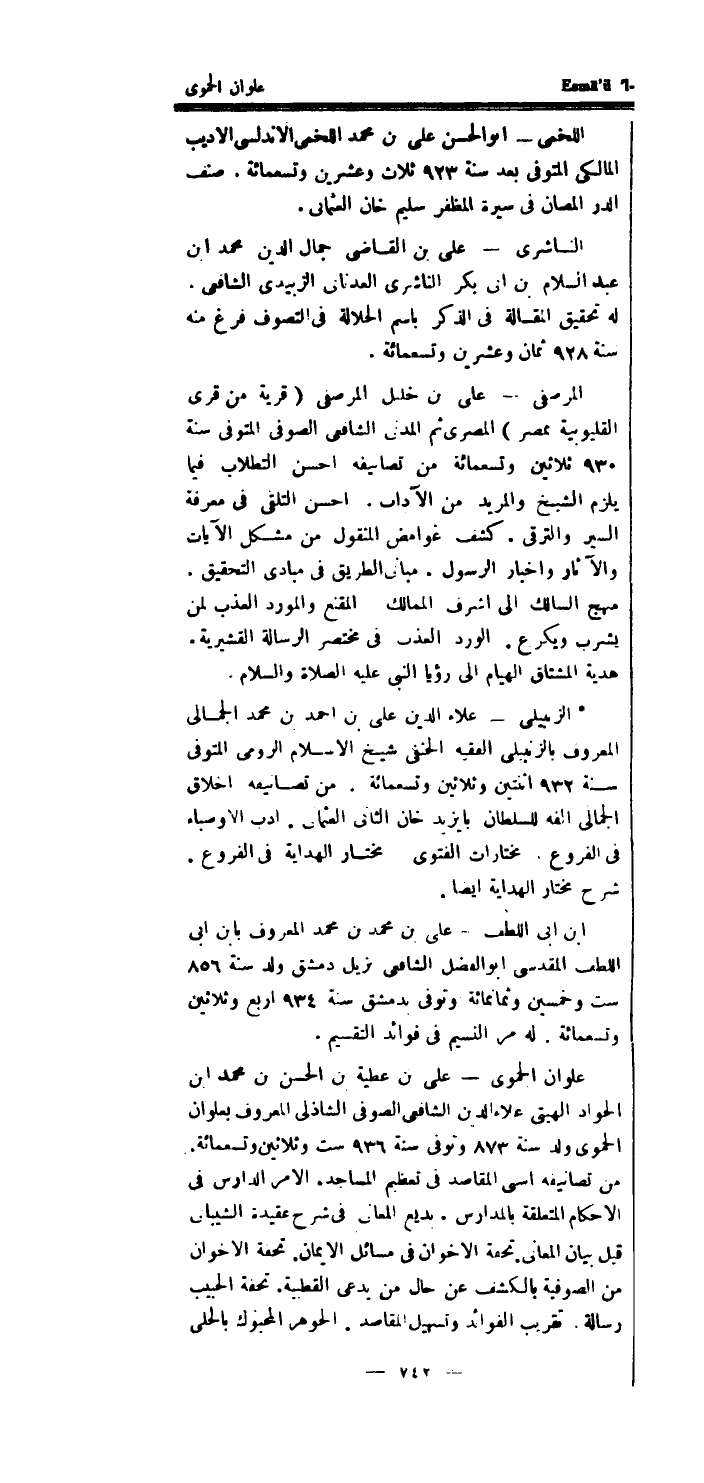 علوان الحموى - على بن عَطِيَّة بن الْحسن بن مُحَمَّد ابْن الْجواد الهيتى عَلَاء الدَّين الشَّافِعِي الصوفى الشاذلى الْمَعْرُوف بعلوان الحموى ولد سنة 873 وَتوفى سنة 936 سِتّ وَثَلَاثِينَ وَتِسْعمِائَة.