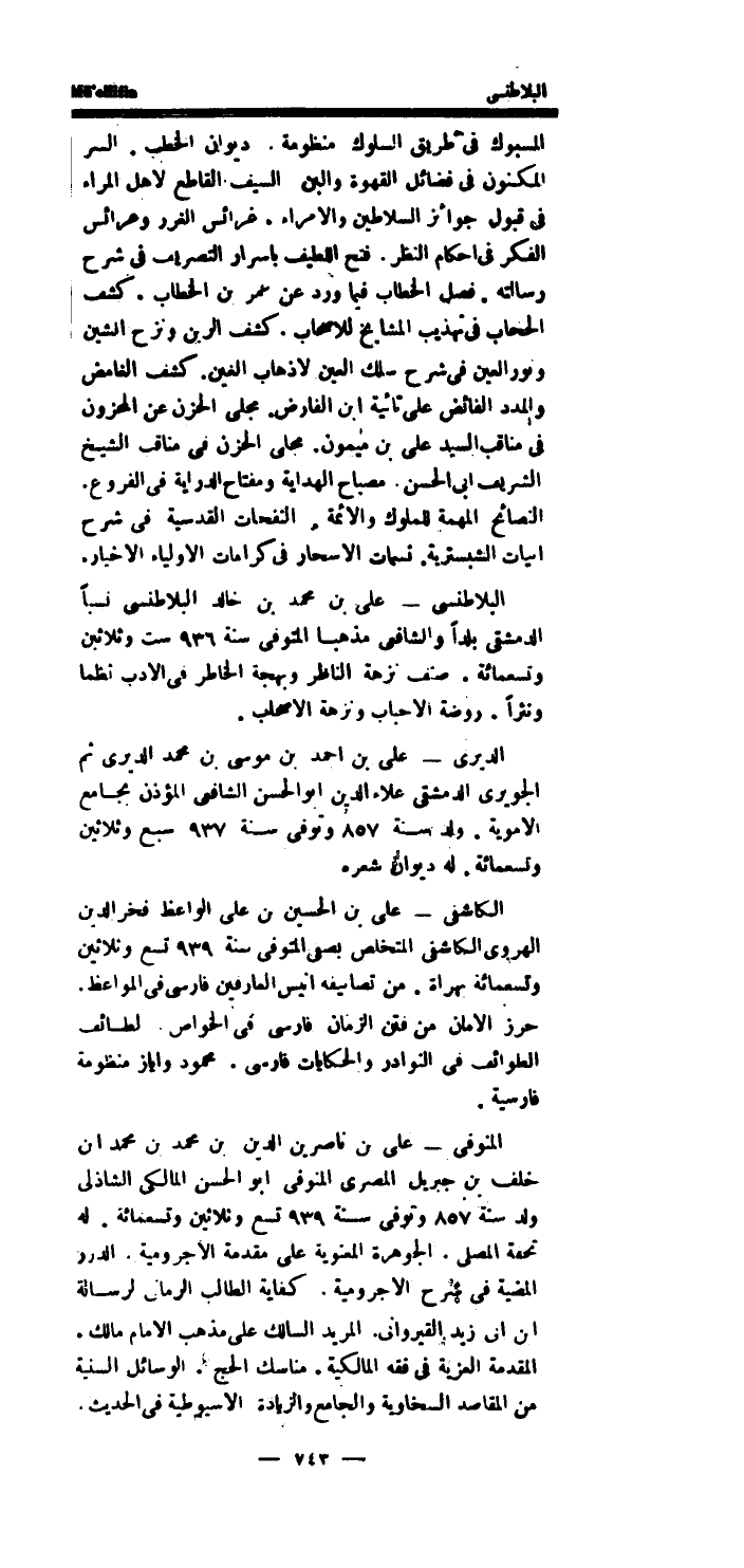 البلاطنسى - على بن مُحَمَّد بن خَالِد البلاطنسى نسبا الدِّمَشْقِي بَلَدا وَالشَّافِعِيّ مذهبا الْمُتَوفَّى سنة 936 سِتّ وَثَلَاثِينَ وَتِسْعمِائَة.