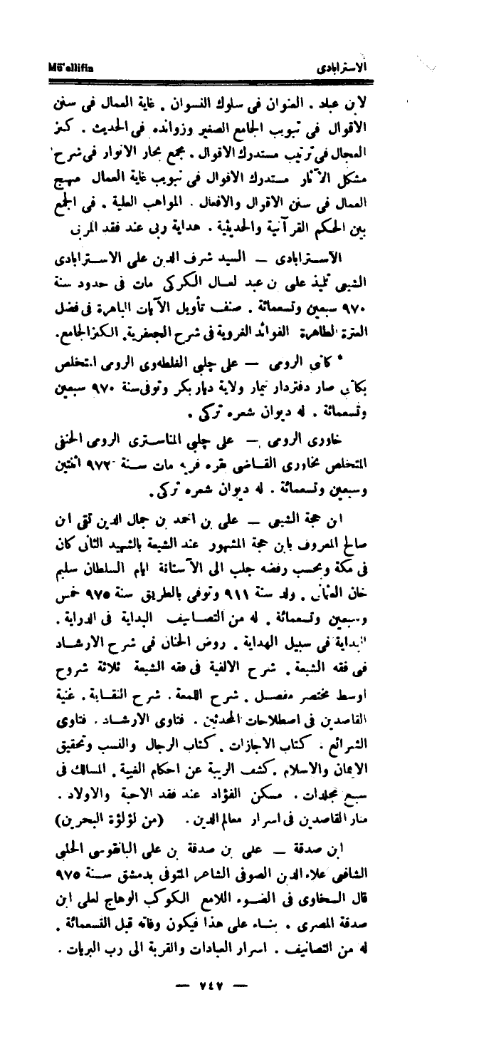 هِدَايَة ربى عِنْد فقد المربى الاسترابادي - السَّيِّد شرف الدَّين على الاسترابادي الشيعي تلميذ على بن عبد العال الكركي مَاتَ فِي حُدُود سنة 970 سبعين وَتِسْعمِائَة.
