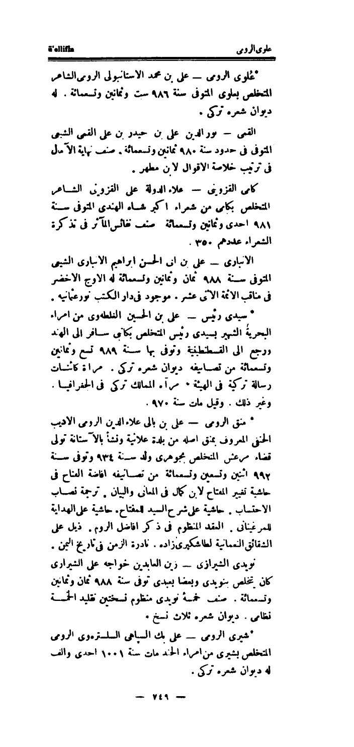 * علوى الرُّومِي - على بن مُحَمَّد الاستانبولى الرُّومِي الشَّاعِر المتخلص بعلوى الْمُتَوفَّى سنة 986 سِتّ وَثَمَانِينَ وَتِسْعمِائَة.