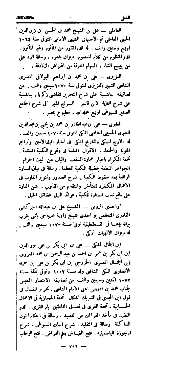 العزيزي - على بن مُحَمَّد بن ابراهيم البولاقى المصرى الشَّافِعِي الشهير بالعزيزي الْمُتَوفَّى سنة 1070 سبعين والف.