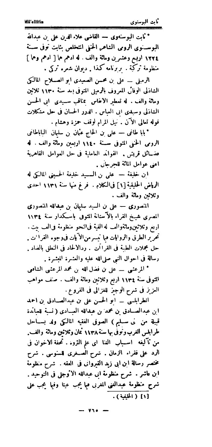 * المرعشي - على بن فضل الله بن مُحَمَّد المرعشي الشَّافِعِي الْمُتَوفَّى سنة 1134 ارْبَعْ وَثَلَاثِينَ وَمِائَة والف.