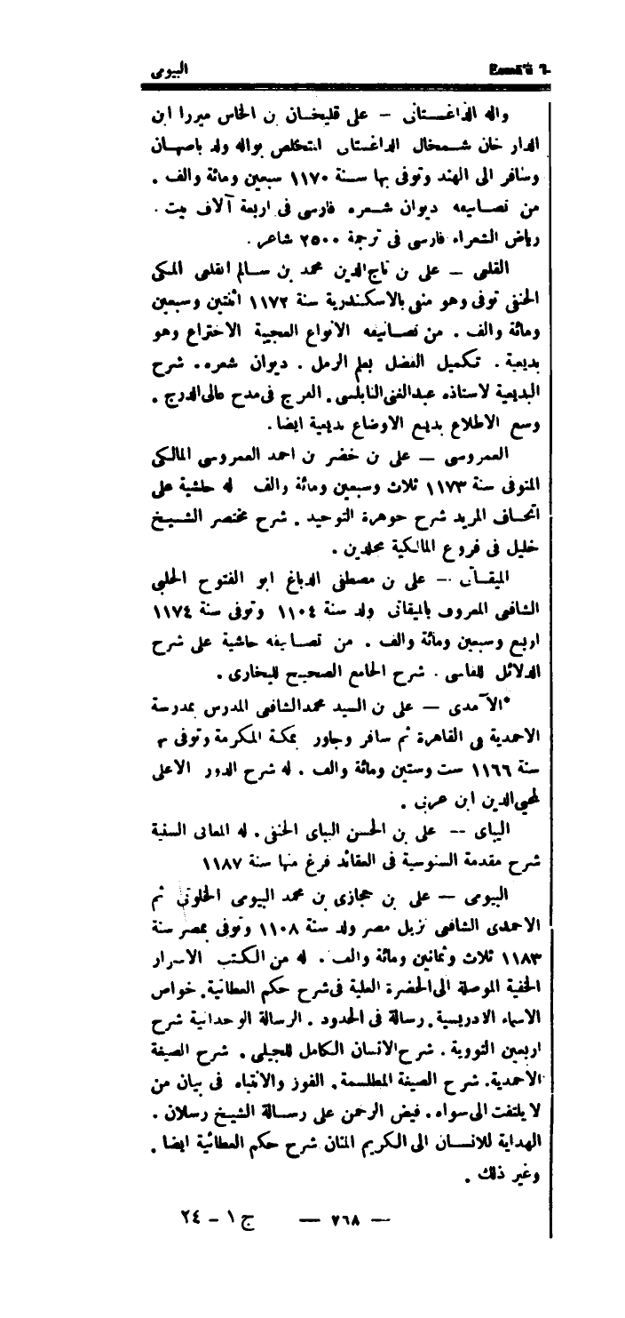 القلعى - على بن تَاج الدَّين مُحَمَّد بن سَالم القلعى المكى الْحَنَفِيّ توفى وَهُوَ منفى بالاسكندرية سنة 1172 اثْنَتَيْنِ وَسبعين وَمِائَة والف.