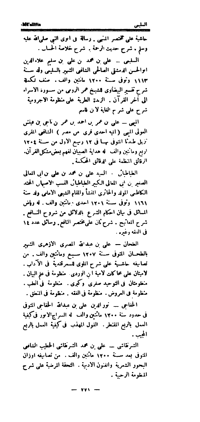 السليمى - على بن مُحَمَّد بن على بن سليم عَلَاء الدَّين أَبُو الْحسن الدِّمَشْقِي الصَّالِحِي الشَّافِعِي الشهير بالسليمى ولد سنة 1113 وَتوفى سنة 1200 مِائَتَيْنِ والف.