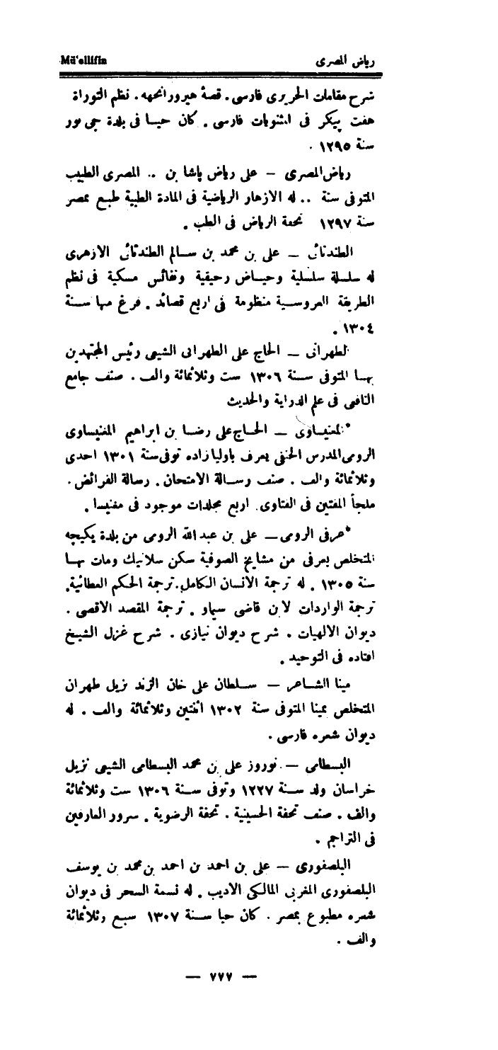 رياض المصرى - على رياض پاشا بن..المصرى الطَّبِيب الْمُتَوفَّى سنة..لَهُ الازهار الرياضية فِي الْمَادَّة الطبية طبع بصر سنة 1297 تحفة الرياض فِي الطِّبّ.