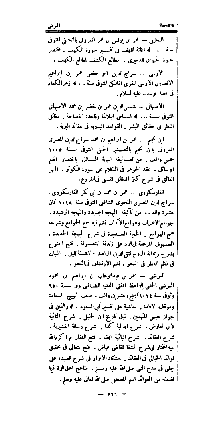 ابْن نجيم - عمر بن ابراهيم بن مُحَمَّد سراج الدَّين المصرى الْمَعْرُوف بِابْن نجيم بِالتَّصْغِيرِ الْحَنَفِيّ الْمُتَوفَّى سنة 1005 خمس والف.