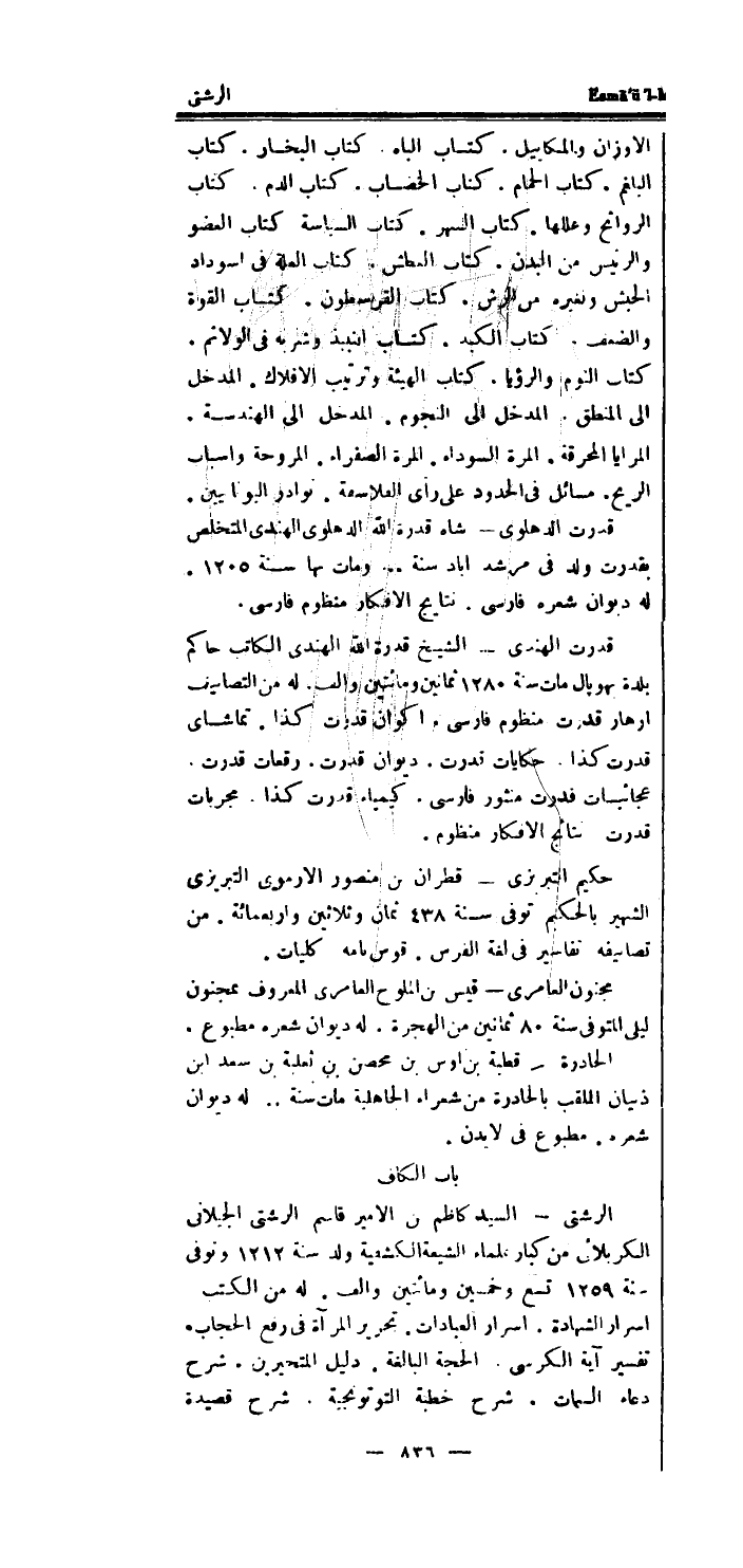 الرشتى - السَّيِّد كاظم بن الامير قَاسم الرشتى الجيلاني الكربلائي من كبار عُلَمَاء الشِّيعَة الكشفية ولد سنة 1212 وَتوفى سنة 1259 تسع وَخمسين وَمِائَتَيْنِ والف.