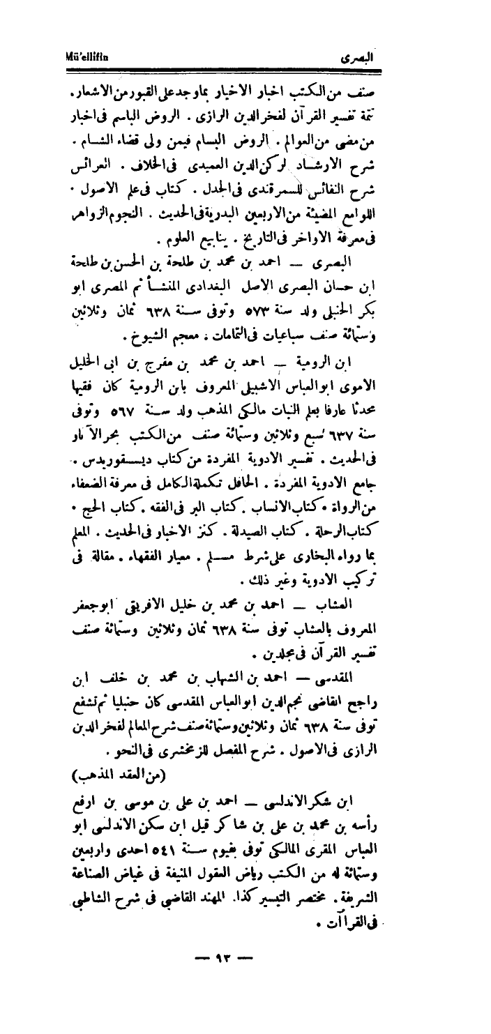 (من العقد الْمَذْهَب) ابْن شكر الاندلسي - احْمَد بن على بن مُوسَى بن ارْفَعْ رَأسه بن مُحَمَّد بن على بن شَاكر قيل ابْن سكن الاندلسي أَبُو الْعَبَّاس المقرى المالكى توفى بفيوم سنة 541 احدى واربعين وسِتمِائَة لَهُ من الْكتب رياض الْعُقُول المنيفة فِي غِيَاض الصِّنَاعَة الشَّرِيفَة.