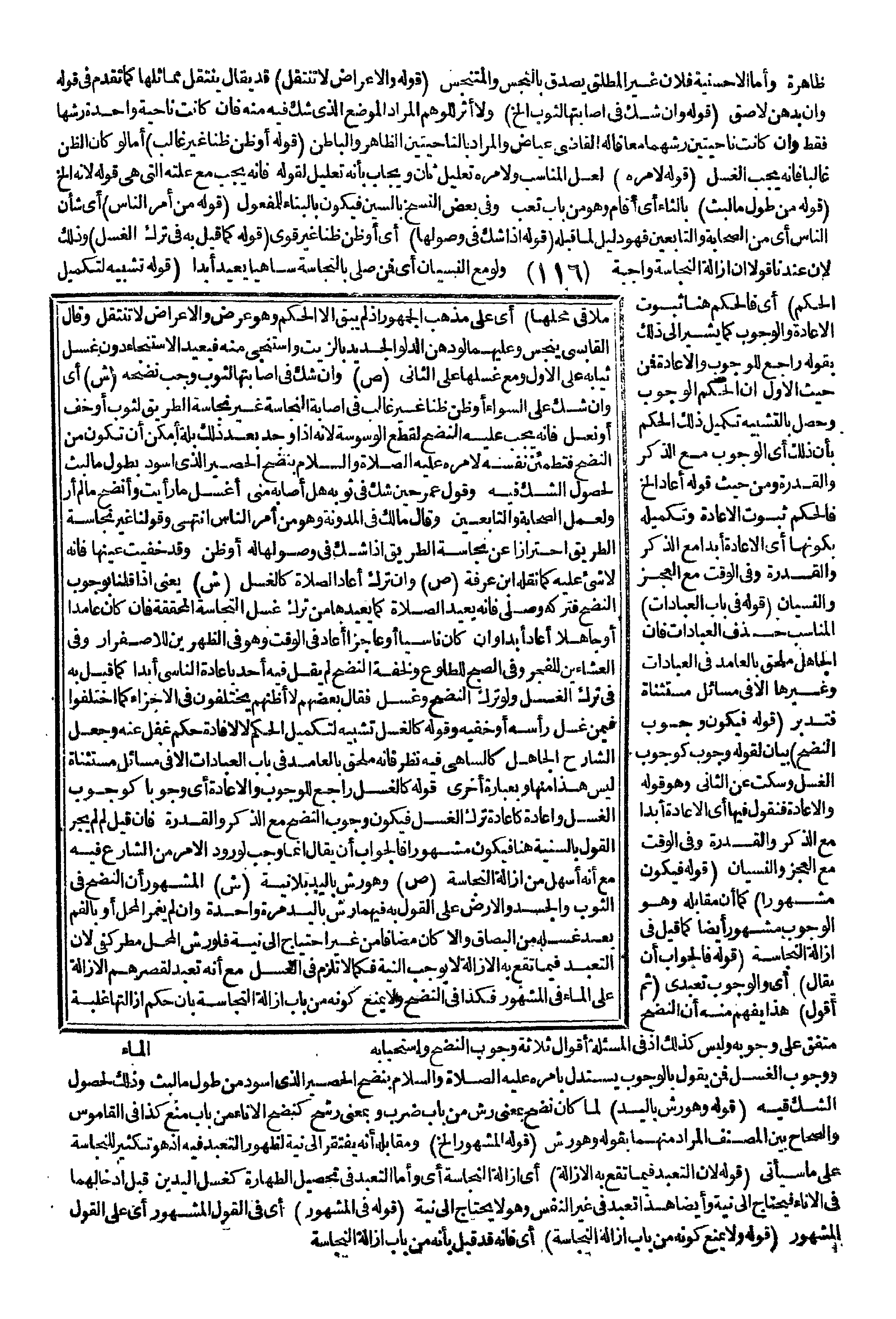 (قَوْلُهُ كَمَا قِيلَ بِهِ فِي تَرْكِ الْغَسْلِ) وَذَلِكَ؛ لِأَنَّ عِنْدَنَا قَوْلًا أَنَّ إزَالَةَ النَّجَاسَةِ وَاجِبَةٌ وَلَوْ مَعَ النِّسْيَانِ أَيْ فَمَنْ صَلَّى بِالنَّجَاسَةِ سَاهِيًا يُعِيدُ أَبَدًا (قَوْلُهُ تَشْبِيهٌ لِتَكْمِيلِ الْحُكْمِ) أَيْ فَالْحُكْمُ هُنَا ثُبُوتُ الْإِعَادَةِ وَالْوُجُوبُ كَمَا يُشِيرُ إلَى ذَلِكَ بِقَوْلِهِ رَاجِعٌ لِلْوُجُوبِ وَالْإِعَادَةِ فَمِنْ حَيْثُ الْأَوَّلُ أَنَّ الْحُكْمَ الْوُجُوبُ وَحَصَلَ بِالتَّشْبِيهِ تَكْمِيلُ ذَلِكَ الْحُكْمِ بِأَنَّ ذَلِكَ أَيْ الْوُجُوبَ مَعَ الذِّكْرِ وَالْقُدْرَةِ وَمِنْ حَيْثُ قَوْلُهُ أَعَادَ إلَخْ فَالْحُكْمُ ثُبُوتُ الْإِعَادَةِ وَتَكْمِيلُهُ بِكَوْنِهَا أَيْ الْإِعَادَةِ أَبَدًا مَعَ الذِّكْرِ وَالْقُدْرَةِ وَفِي الْوَقْتِ مَعَ الْعَجْزِ وَالنِّسْيَانِ (قَوْلُهُ فِي بَابِ الْعِبَادَاتِ) الْمُنَاسِبُ حَذْفُ الْعِبَادَاتِ فَإِنَّ الْجَاهِلَ مُلْحَقٌ بِالْعَامِدِ فِي الْعِبَادَاتِ وَغَيْرِهَا إلَّا فِي مَسَائِلَ مُسْتَثْنَاةٍ فَتَدَبَّرْ (قَوْلُهُ فَيَكُونُ وُجُوبُ النَّضْحِ) بَيَانٌ لِقَوْلِهِ وُجُوبٌ كَوُجُوبِ الْغَسْلِ وَسَكَتَ عَنْ الثَّانِي، وَهُوَ قَوْلُهُ وَالْإِعَادَةُ فَنَقُولُ فِيهَا أَيْ الْإِعَادَةُ أَبَدًا مَعَ الذِّكْرِ وَالْقُدْرَةِ وَفِي الْوَقْتِ مَعَ الْعَجْزِ وَالنِّسْيَانِ (قَوْلُهُ فَيَكُونُ مَشْهُورًا) كَمَا أَنَّ مُقَابِلَهُ، وَهُوَ الْوُجُوبُ مَشْهُورٌ أَيْضًا كَمَا قِيلَ فِي إزَالَةِ النَّجَاسَةِ (قَوْلُهُ فَالْجَوَابُ أَنْ يُقَالَ) أَيْ وَالْجَوْبُ تَعَبُّدِيٌّ (ثُمَّ أَقُولُ) هَذَا يُفْهَمُ مِنْهُ أَنَّ النَّضْحَ مُتَّفَقٌ عَلَى وُجُوبِهِ وَلَيْسَ كَذَلِكَ إذْ فِي الْمَسْأَلَةِ أَقْوَالٌ ثَلَاثَةٌ وُجُوبُ النَّضْحِ وَاسْتِحْبَابُهُ وَوُجُوبُ الْغَسْلِ فَمَنْ يَقُولُ بِالْوُجُوبِ يَسْتَدِلُّ «بِأَمْرِهِ - عَلَيْهِ الصَّلَاةُ وَالسَّلَامُ - بِنَضْحِ الْحَصِيرِ الَّذِي اسْوَدَّ مِنْ طُولِ مَا لَبِثَ» وَذَلِكَ لِحُصُولِ الشَّكِّ فِيهِ.