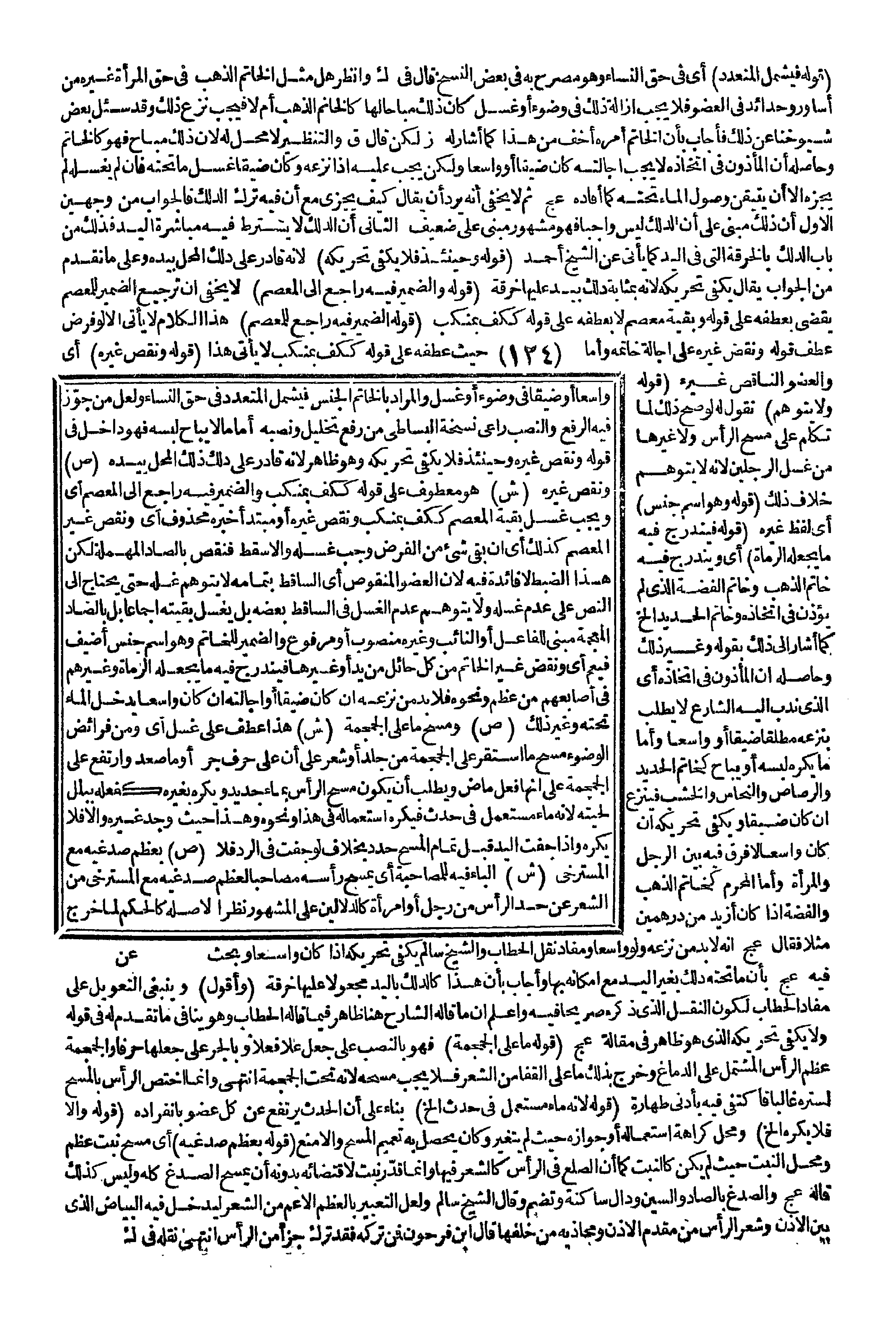 ـــــــــــــــــــــــــــــQ (قَوْلُهُ: فَيَشْمَلُ الْمُتَعَدِّدَ) أَيْ فِي حَقِّ النِّسَاءِ وَهُوَ مُصَرَّحٌ بِهِ فِي بَعْضِ النُّسَخِ قَالَ فِي ك وَانْظُرْ هَلْ مِثْلُ الْخَاتَمِ الذَّهَبِ فِي حَقِّ الْمَرْأَةِ غَيْرُهُ مِنْ أَسَاوِرَ وَحَدَائِدَ فِي الْعُضْوِ فَلَا يَجِبُ إزَالَةُ ذَلِكَ فِي وُضُوءٍ أَوْ غُسْلٍ كَانَ ذَلِكَ مُبَاحًا لَهَا كَالْخَاتَمِ الذَّهَبِ أَمْ لَا فَيَجِبُ نَزْعُ ذَلِكَ وَقَدْ سُئِلَ بَعْضُ شُيُوخِنَا عَنْ ذَلِكَ فَأَجَابَ بِأَنَّ الْخَاتَمَ أَمْرُهُ أَخَفُّ مِنْ هَذَا كَمَا أَشَارَ لَهُ ز لَكِنْ قَالَ ق وَالتَّنْظِيرُ لَا مَحِلَّ لَهُ لِأَنَّ ذَلِكَ مُبَاحٌ فَهُوَ كَالْخَاتَمِ وَحَاصِلُهُ أَنَّ الْمَأْذُونَ فِي اتِّخَاذِهِ لَا يَجِبُ إجَالَتُهُ كَانَ ضَيِّقًا أَوْ وَاسِعًا وَلَكِنْ يَجِبُ عَلَيْهِ إذَا نَزَعَهُ وَكَانَ ضَيِّقًا غَسْلُ مَا تَحْتَهُ، فَإِنْ لَمْ يَغْسِلْهُ لَمْ يُجْزِهِ إلَّا أَنْ يَتَيَقَّنَ وُصُولَ الْمَاءِ تَحْتَهُ كَمَا أَفَادَهُ عج ثُمَّ لَا يَخْفَى أَنَّهُ يَرِدُ أَنْ يُقَالَ كَيْفَ يَجْزِي مَعَ أَنَّ فِيهِ تَرْكَ الدَّلْكِ فَالْجَوَابُ مِنْ وَجْهَيْنِ الْأَوَّلُ أَنَّ ذَلِكَ مَبْنِيٌّ عَلَى أَنَّ الدَّلْكَ لَيْسَ وَاجِبًا فَهُوَ مَشْهُورٌ مَبْنِيٌّ عَلَى ضَعِيفٍ. الثَّانِي أَنَّ الدَّلْكَ لَا يُشْتَرَطُ فِيهِ مُبَاشَرَةُ الْيَدِ فَذَلِكَ مِنْ بَابِ الدَّلْكِ بِالْخِرْقَةِ الَّتِي فِي الْيَدِ كَمَا يَأْتِي عَنْ الشَّيْخِ أَحْمَدَ (قَوْلُهُ: وَحِينَئِذٍ فَلَا يَكْفِي تَحْرِيكُهُ) لِأَنَّهُ قَادِرٌ عَلَى ذَلِكَ الْمَحِلِّ بِيَدِهِ وَعَلَى مَا تَقَدَّمَ مِنْ الْجَوَابِ يُقَالُ يَكْفِي تَحْرِيكُهُ لِأَنَّهُ بِمَثَابَةِ دَلْكٍ بِيَدٍ عَلَيْهَا خِرْقَةٌ (قَوْلُهُ: وَالضَّمِيرُ فِيهِ رَاجِعٌ إلَى الْمِعْصَمِ) لَا يَخْفَى أَنَّ تَرْجِيعَ الضَّمِيرِ لِلْمِعْصَمِ يَقْضِي بِعَطْفِهِ عَلَى قَوْلِهِ وَبَقِيَّةِ مِعْصَمٍ لَا بِعَطْفِهِ عَلَى قَوْلِهِ كَكَفٍّ بِمَنْكِبٍ (قَوْلُهُ: الضَّمِيرُ فِيهِ رَاجِعٌ لِلْمِعْصَمِ) هَذَا الْكَلَامُ لَا يَأْتِي إلَّا لَوْ فُرِضَ عَطْفُ قَوْلِهِ وَنَقْضُ غَيْرِهِ عَلَى إجَالَةِ خَاتَمِهِ، وَأَمَّا حَيْثُ عَطَفَهُ عَلَى قَوْلِهِ كَكَفٍّ بِمَنْكِبٍ لَا يَأْتِي هَذَا (قَوْلُهُ: وَنَقْصُ غَيْرِهِ) أَيْ وَالْعُضْوُ النَّاقِصُ غَيْرُهُ.
