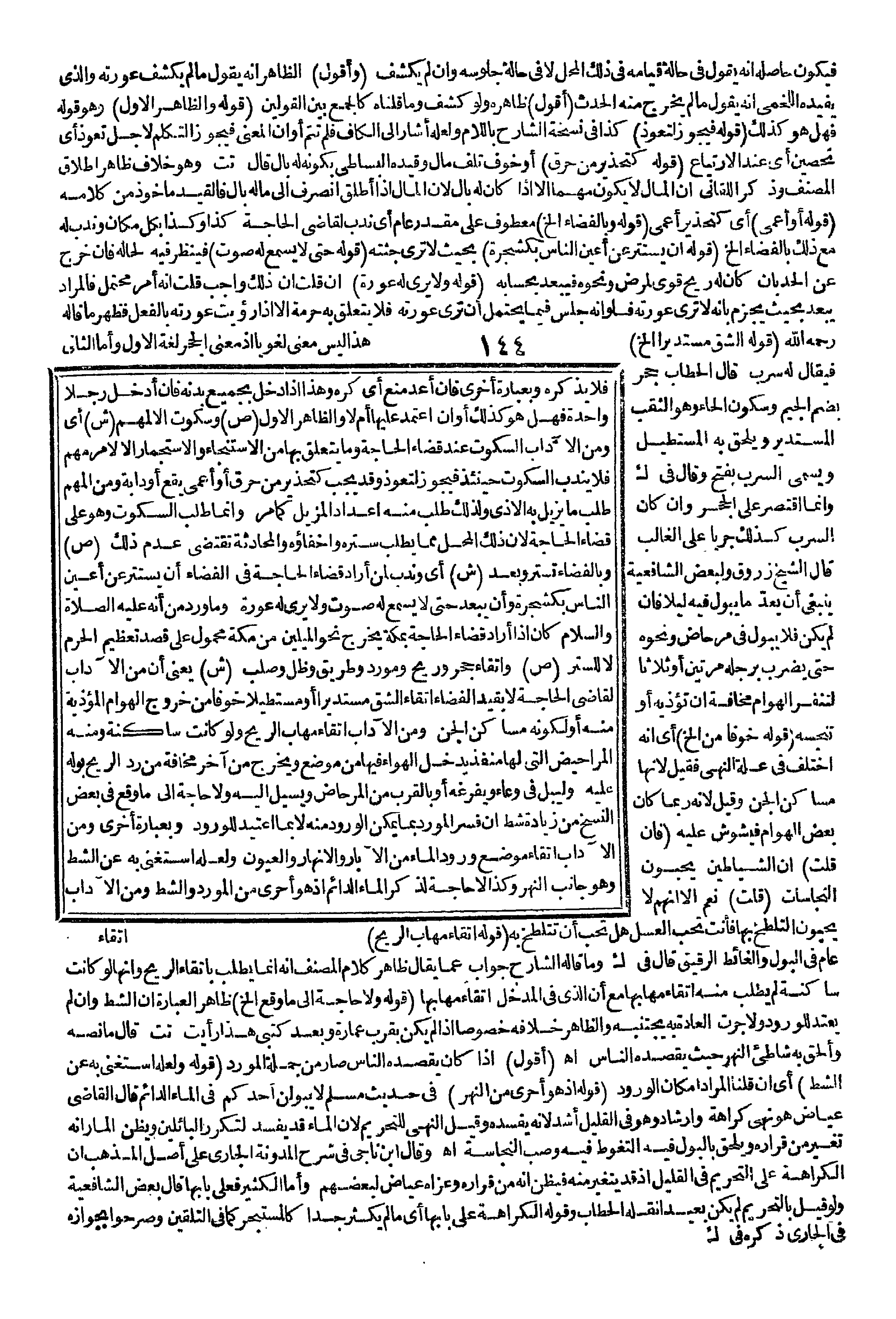 ـــــــــــــــــــــــــــــQفَيَكُونُ حَاصِلُهُ أَنْ يَقُولَ فِي حَالَةِ قِيَامِهِ فِي ذَلِكَ الْمَحَلِّ لَا فِي حَالَةِ جُلُوسِهِ، وَإِنْ لَمْ يَكْشِفْ (وَأَقُولُ) الظَّاهِرُ أَنَّهُ يَقُولُ مَا لَمْ يَكْشِفْ عَوْرَتَهُ وَاَلَّذِي يُفِيدُهُ اللَّخْمِيُّ أَنَّهُ يَقُولُ مَا لَمْ يَخْرُجْ مِنْهُ الْحَدَثُ (أَقُولُ) ظَاهِرُهُ وَلَوْ كَشَفَ وَمَا قُلْنَا كَالْجَمْعِ بَيْنَ الْقَوْلَيْنِ (قَوْلُهُ: وَالظَّاهِرُ الْأَوَّلُ) وَهُوَ قَوْلُهُ فَهَلْ هُوَ كَذَلِكَ.