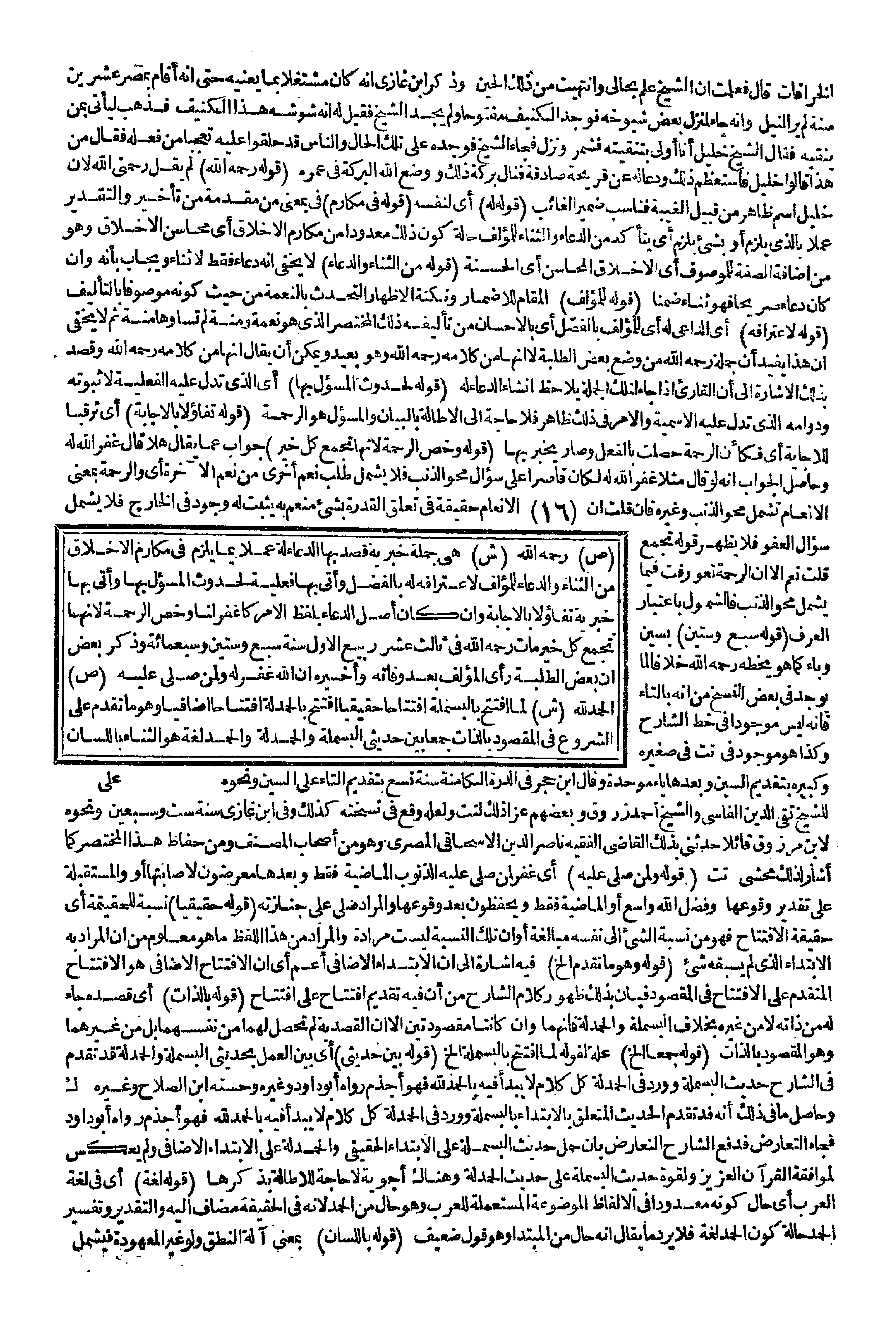 قَالَ فَعَلِمْت أَنَّ الشَّيْخَ عَلِمَ بِحَالِي وَانْتَهَيْت مِنْ ذَلِكَ الْحِينِ وَذَكَرَ ابْنُ غَازِيٍّ أَنَّهُ كَانَ مُشْتَغِلًا بِمَا يَعْنِيهِ حَتَّى أَنَّهُ أَقَامَ بِمِصْرَ عِشْرِينَ سَنَةً لَمْ يَرَ النِّيلَ وَأَنَّهُ جَاءَ لِمَنْزِلِ بَعْضِ شُيُوخِهِ فَوَجَدَ الْكَنِيفَ مَفْتُوحًا وَلَمْ يَجِدْ الشَّيْخَ فَقِيلَ لَهُ إنَّهُ شَوَّشَهُ هَذَا الْكَنِيفُ فَذَهَبَ لِيَأْتِيَ بِمَنْ يُنْقِيهِ فَقَالَ الشَّيْخُ خَلِيلُ أَنَا أَوْلَى بِتَنْقِيَتِهِ فَشَمَّرَ وَنَزَلَ فَجَاءَ الشَّيْخُ فَوَجَدَهُ عَلَى تِلْكَ الْحَالِ وَالنَّاسُ قَدْ حَلَّقُوا عَلَيْهِ تَعَجُّبًا مِنْ فِعْلِهِ فَقَالَ مَنْ هَذَا قَالُوا خَلِيلٌ فَاسْتَعْظَمَ ذَلِكَ وَدَعَا لَهُ عَنْ قَرِيحَةٍ صَادِقَةٍ فَنَالَ بَرَكَةَ ذَلِكَ وَوَضَعَ اللَّهُ الْبَرَكَةَ فِي عُمُرِهِ (قَوْلُهُ - رَحِمَهُ اللَّهُ -) لَمْ يَقُلْ رَحِمَنِي اللَّهُ؛ لِأَنَّ خَلِيلَ اسْمٌ ظَاهِرٌ مِنْ قَبِيلِ الْغَيْبَةِ فَنَاسَبَ ضَمِيرَ الْغَائِبِ (قَوْلُهُ لَهُ) أَيْ لِنَفْسِهِ (قَوْلُهُ فِي مَكَارِمِ) فِي بِمَعْنَى مِنْ مُقَدَّمَةٌ مِنْ تَأْخِيرٍ وَالتَّقْدِيرُ عَمَلًا بِاَلَّذِي يَلْزَمُ أَوْ بِشَيْءٍ يَلْزَمُ أَيْ يَتَأَكَّدُ مِنْ الدُّعَاءِ وَالثَّنَاءِ لَلْمُؤَلِّفِ حَالَةَ كَوْنِ ذَلِكَ مَعْدُودًا مِنْ مَكَارِمِ الْأَخْلَاقِ أَيْ مَحَاسِنِ الْأَخْلَاقِ، وَهُوَ مِنْ إضَافَةِ الصِّفَةِ لِلْمَوْصُوفِ أَيْ الْأَخْلَاقِ الْمَحَاسِنِ أَيْ الْحَسَنَةِ (قَوْلُهُ مِنْ الثَّنَاءِ وَالدُّعَاءِ) لَا يَخْفَى أَنَّهُ دُعَاءٌ فَقَطْ لَا ثَنَاءٌ وَيُجَابُ بِأَنَّهُ، وَإِنْ كَانَ دُعَاءً صَرِيحًا فَهُوَ ثَنَاءٌ ضِمْنًا (قَوْلُهُ لَلْمُؤَلِّفِ) الْمُقَامُ لِلْإِضْمَارِ وَنُكْتَةُ الْإِظْهَارِ التَّحَدُّثُ بِالنِّعْمَةِ مِنْ حَيْثُ كَوْنُهُ مَوْصُوفًا بِالتَّأْلِيفِ (قَوْلُهُ لِاعْتِرَافِهِ) أَيْ الدَّاعِي لَهُ أَيْ لَلْمُؤَلِّفِ بِالْفَضْلِ أَيْ بِالْإِحْسَانِ مِنْ تَأْلِيفِهِ ذَلِكَ الْمُخْتَصَرَ الَّذِي هُوَ نِعْمَةٌ وَمِنَّةٌ لَمْ تُسَاوِهَا مِنَّةٌ، ثُمَّ لَا يَخْفَى أَنَّ هَذَا يُفِيدُ أَنَّ جُمْلَةَ - رَحِمَهُ اللَّهُ - مِنْ وَضْعِ بَعْضِ الطَّلَبَةِ لَا أَنَّهَا مِنْ كَلَامِهِ - رَحِمَهُ اللَّهُ -، وَهُوَ بَعِيدٌ وَيُمْكِنُ أَنْ يُقَالَ أَنَّهَا مِنْ كَلَامِهِ - رَحِمَهُ اللَّهُ - وَقَصَدَ بِذَلِكَ الْإِشَارَةَ إلَى أَنَّ الْقَارِئَ إذَا جَاءَ لِتِلْكَ الْجُمْلَةِ يُلَاحِظُ إنْشَاءَ الدُّعَاءِ لَهُ (قَوْلُهُ لِحُدُوثِ الْمَسْئُولِ بِهَا) أَيْ الَّذِي تَدُلُّ عَلَيْهِ الْفِعْلِيَّةُ لَا ثُبُوتُهُ وَدَوَامُهُ الَّذِي تَدُلُّ عَلَيْهِ الِاسْمِيَّةُ وَالْأَمْرُ فِي ذَلِكَ ظَاهِرٌ فَلَا حَاجَةَ إلَى الْإِطَالَةِ بِالْبَيَانِ وَالْمَسْئُولُ هُوَ الرَّحْمَةُ (قَوْلُهُ تَفَاؤُلًا بِالْإِجَابَةِ) أَيْ تَرَقُّبًا لِلْإِجَابَةِ أَيْ فَكَأَنَّ الرَّحْمَةَ حَصَلَتْ بِالْفِعْلِ وَصَارَ يُخْبَرُ بِهَا.