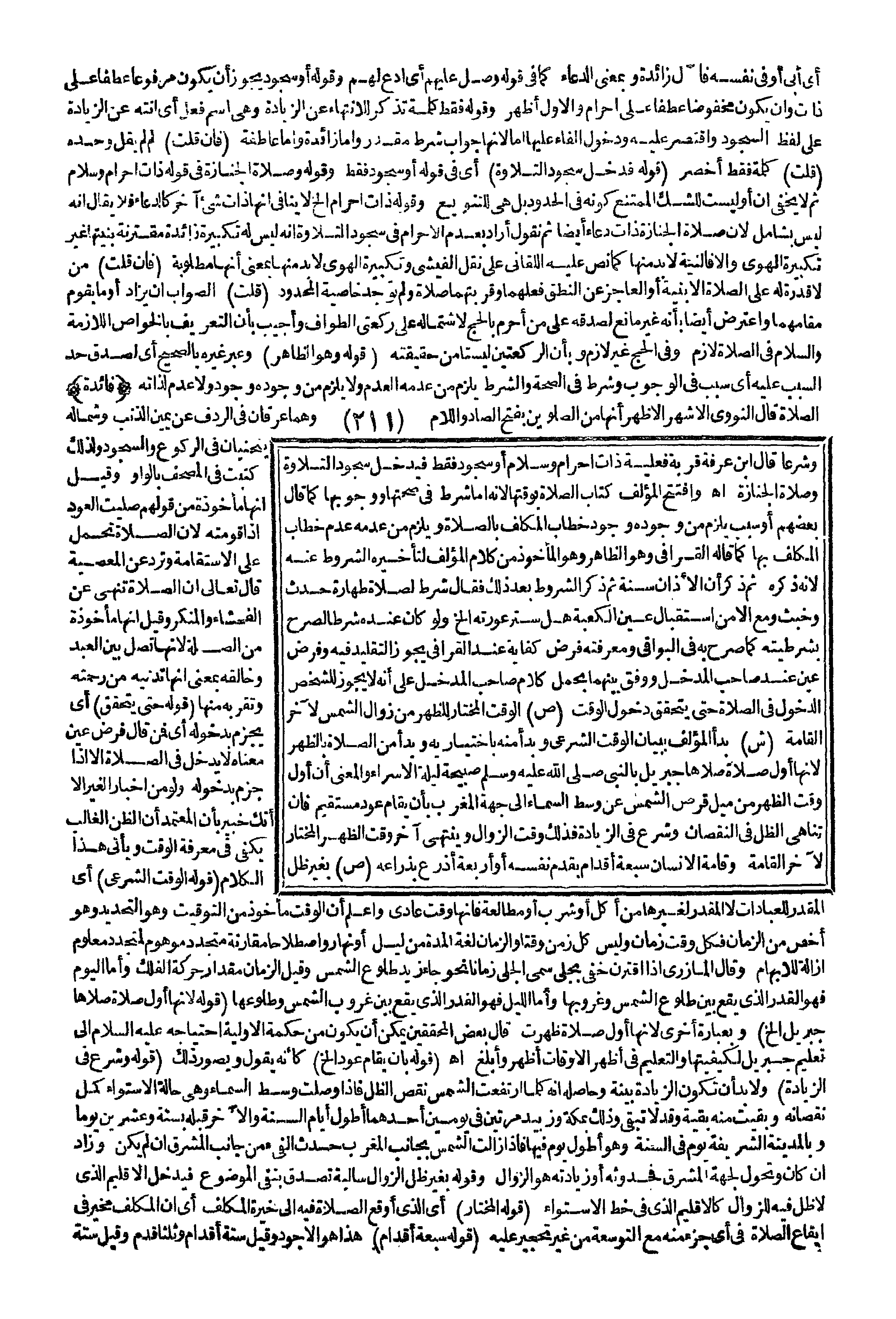 (فَائِدَةٌ) الصَّلَاةُ قَالَ النَّوَوِيُّ الْأَشْهَرُ الْأَظْهَرُ أَنَّهَا مِنْ الصَّلَوَيْنِ بِفَتْحِ الصَّادِ، وَاللَّامِ وَهُمَا عِرْقَانِ فِي الرِّدْفِ عَنْ يَمِينِ الذَّنَبِ وَشِمَالِهِ يَنْحَنِيَانِ فِي الرُّكُوعِ، وَالسُّجُودِ وَلِذَلِكَ كُتِبَتْ فِي الْمُصْحَفِ بِالْوَاوِ وَقِيلَ: إنَّهَا مَأْخُوذَةٌ مِنْ قَوْلِهِمْ صَلَيْت الْعُودَ إذَا قَوَّمْتُهُ لِأَنَّ الصَّلَاةَ تَحْمِلُ عَلَى الِاسْتِقَامَةِ وَتَرُدُّ عَنْ الْمَعْصِيَةِ قَالَ تَعَالَى {إِنَّ الصَّلاةَ تَنْهَى عَنِ الْفَحْشَاءِ وَالْمُنْكَرِ} [العنكبوت: 45] وَقِيلَ: إنَّهَا مَأْخُوذَةٌ مِنْ الصِّلَةِ لِأَنَّهَا تَصِلُ بَيْنَ الْعَبْدِ وَخَالِقِهِ بِمَعْنَى أَنَّهَا تُدْنِيهِ مِنْ رَحْمَتِهِ وَتُقَرِّبُهُ مِنْهَا (قَوْلُهُ: حَتَّى يَتَحَقَّقَ) أَيْ يَجْزِمَ بِدُخُولِهِ أَيْ فَمَنْ قَالَ فَرْضُ عَيْنٍ مَعْنَاهُ لَا يَدْخُلُ فِي الصَّلَاةِ إلَّا إذَا جَزَمَ بِدُخُولِهِ وَلَوْ مِنْ أَخْبَارِ الْغَيْرِ إلَّا أَنَّك خَبِيرٌ بِأَنَّ الْمُعْتَمَدَ أَنَّ الظَّنَّ الْغَالِبَ يَكْفِي فِي مَعْرِفَةِ الْوَقْتِ وَيَأْتِي هَذَا الْكَلَامُ (قَوْلُهُ: الْوَقْتُ الشَّرْعِيُّ) أَيْ الْمُقَدَّرِ لِلْعِبَادَاتِ لَا الْمُقَدَّرِ لِغَيْرِهَا مِنْ أَكْلٍ أَوْ شُرْبٍ أَوْ مُطَالَعَةٍ، فَإِنَّهَا وَقْتٌ عَادِيٌّ وَاعْلَمْ أَنَّ الْوَقْتَ مَأْخُوذٌ مِنْ التَّوْقِيتِ وَهُوَ التَّحْدِيدُ وَهُوَ أَخَصُّ مِنْ الزَّمَانِ فَكُلُّ وَقْتٍ زَمَانٌ وَلَيْسَ كُلُّ زَمَنٍ وَقْتًا، وَالزَّمَانُ لُغَةً الْمُدَّةُ مِنْ لَيْلٍ أَوْ نَهَارٍ وَاصْطِلَاحًا مُقَارَنَةُ مُتَجَدِّدٍ مَوْهُومٍ لِمُتَجَدِّدٍ مَعْلُومٍ إزَالَةً لِلْإِيهَامِ وَقَالَ الْمَازِرِيُّ إذَا اقْتَرَنَ خَفِيٌّ بِجَلِيٍّ سُمِّيَ الْجَلِيُّ زَمَانًا نَحْوُ جَاءَ زَيْدٌ طُلُوعَ الشَّمْسِ وَقِيلَ الزَّمَانُ مِقْدَارُ حَرَكَةِ الْفَلَكِ، وَأَمَّا الْيَوْمُ فَهُوَ الْقَدْرُ الَّذِي يَقَعُ بَيْنَ طُلُوعِ الشَّمْسِ وَغُرُوبِهَا، وَأَمَّا اللَّيْلُ فَهُوَ الْقَدْرُ الَّذِي يَقَعُ بَيْنَ غُرُوبِ الشَّمْسِ وَطُلُوعِهَا (قَوْلُهُ: لِأَنَّهَا أَوَّلُ صَلَاةٍ صَلَّاهَا جِبْرِيلُ إلَخْ) وَبِعِبَارَةٍ أُخْرَى لِأَنَّهَا أَوَّلُ صَلَاةٍ ظَهَرَتْ قَالَ بَعْضُ الْمُحَقِّقِينَ يُمْكِنُ أَنْ يَكُونَ مِنْ حِكْمَةِ الْأَوَّلِيَّةِ احْتِيَاجُهُ - عَلَيْهِ السَّلَامُ - إلَى تَعْلِيمِ جِبْرِيلَ لِكَيْفِيَّتِهَا، وَالتَّعْلِيمُ فِي أَظْهَرِ الْأَوْقَاتِ أَظْهَرُ وَأَبْلَغُ. اهـ.