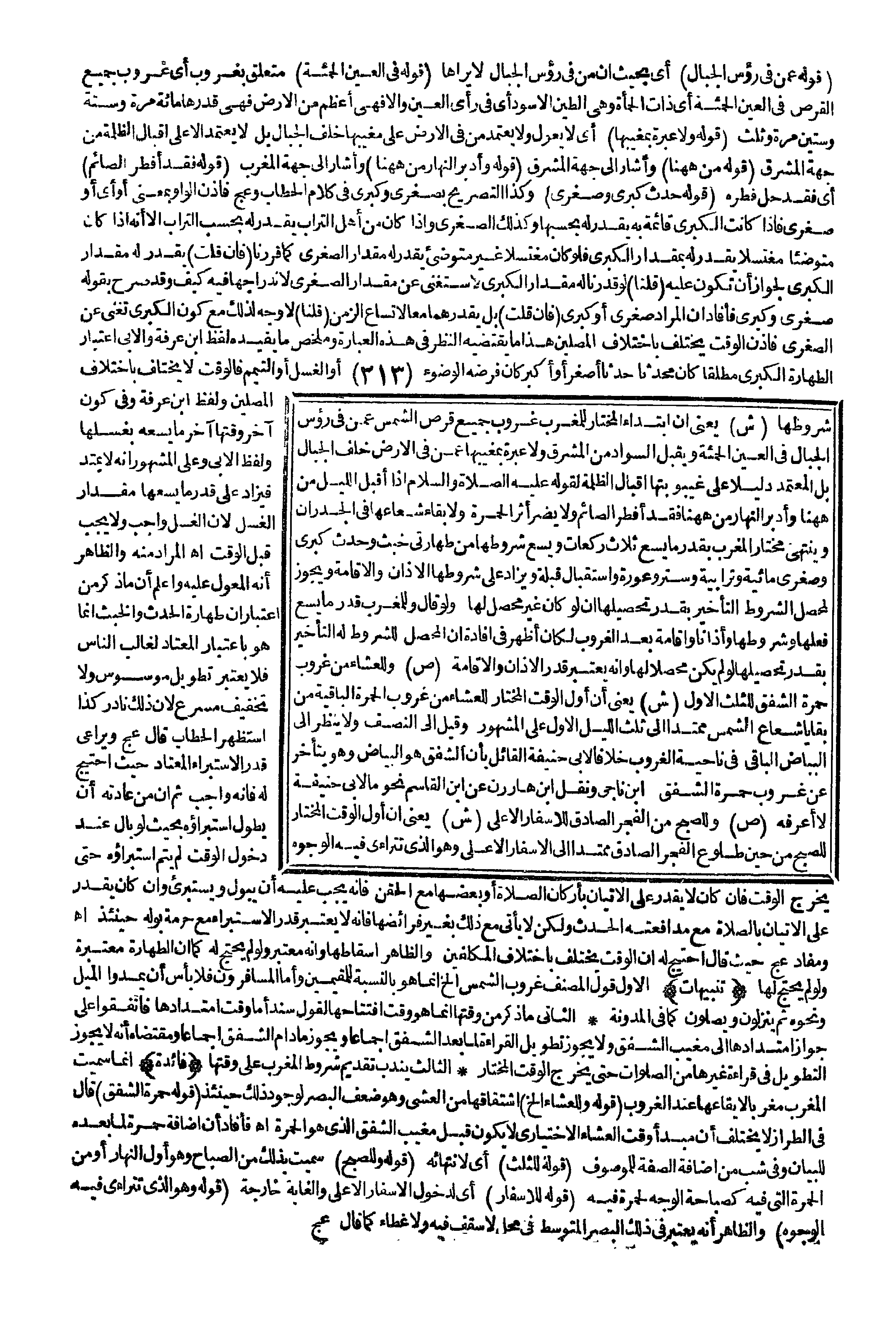 ـــــــــــــــــــــــــــــQقَوْلُهُ: عَمَّنْ فِي رُءُوسِ الْجِبَالِ) أَيْ بِحَيْثُ إنَّ مَنْ فِي رُءُوسِ الْجِبَالِ لَا يَرَاهَا (قَوْلُهُ: فِي الْعَيْنِ الْحَمِئَةِ) مُتَعَلِّقٌ بِغُرُوبٍ أَيْ غُرُوبِ جَمِيعِ الْقُرْصِ فِي الْعَيْنِ الْحَمِئَةِ أَيْ ذَاتِ الْحَمْأَةِ وَهِيَ الطِّينُ الْأَسْوَدُ أَيْ فِي رَأْيِ الْعَيْنِ وَإِلَّا فَهِيَ أَعْظَمُ مِنْ الْأَرْضِ فَهِيَ قَدْرُهَا مِائَةَ مَرَّةٍ وَسِتَّةً وَسِتِّينَ مَرَّةً وَثُلُثًا (قَوْلُهُ: وَلَا عِبْرَةَ بِمَغِيبِهَا) أَيْ لَا يُعَوَّلُ وَلَا يُعْتَمَدُ مَنْ فِي الْأَرْضِ عَلَى مَغِيبِهَا خَلْفَ الْجِبَالِ بَلْ لَا يُعْتَمَدُ إلَّا عَلَى إقْبَالِ الظُّلْمَةِ مِنْ جِهَةِ الْمَشْرِقِ (قَوْلُهُ: مِنْ هَاهُنَا) وَأَشَارَ إلَى جِهَةِ الْمَشْرِقِ (قَوْلُهُ: وَأَدْبَرَ النَّهَارُ مِنْ هَاهُنَا) وَأَشَارَ إلَى جِهَةِ الْمَغْرِبِ (قَوْلُهُ: فَقَدْ أَفْطَرَ الصَّائِمُ) أَيْ فَقَدْ حَلَّ فِطْرُهُ (قَوْلُهُ: حَدَثٌ كُبْرَى وَصُغْرَى) وَكَذَا التَّصْرِيحُ بِصُغْرَى وَكُبْرَى فِي كَلَامِ الْحَطَّابِ وَعِجْ فَإِذَنْ الْوَاوُ بِمَعْنَى أَوْ أَيْ أَوْ صُغْرَى، فَإِذَا كَانَتْ الْكُبْرَى قَائِمَةً بِهِ يُقَدَّرُ لَهُ بِحَسَبِهَا وَكَذَلِكَ الصُّغْرَى، وَإِذَا كَانَ مِنْ أَهْلِ التُّرَابِ يُقَدَّرُ لَهُ بِحَسَبِ التُّرَابِ إلَّا أَنَّهُ إذَا كَانَ مُتَوَضِّئًا مُغْتَسِلًا يُقَدَّرُ لَهُ بِمِقْدَارِ الْكُبْرَى فَلَوْ كَانَ مُغْتَسِلًا غَيْرَ مُتَوَضِّئٍ يُقَدَّرُ لَهُ مِقْدَارُ الصُّغْرَى كَمَا قَرَّرْنَا.