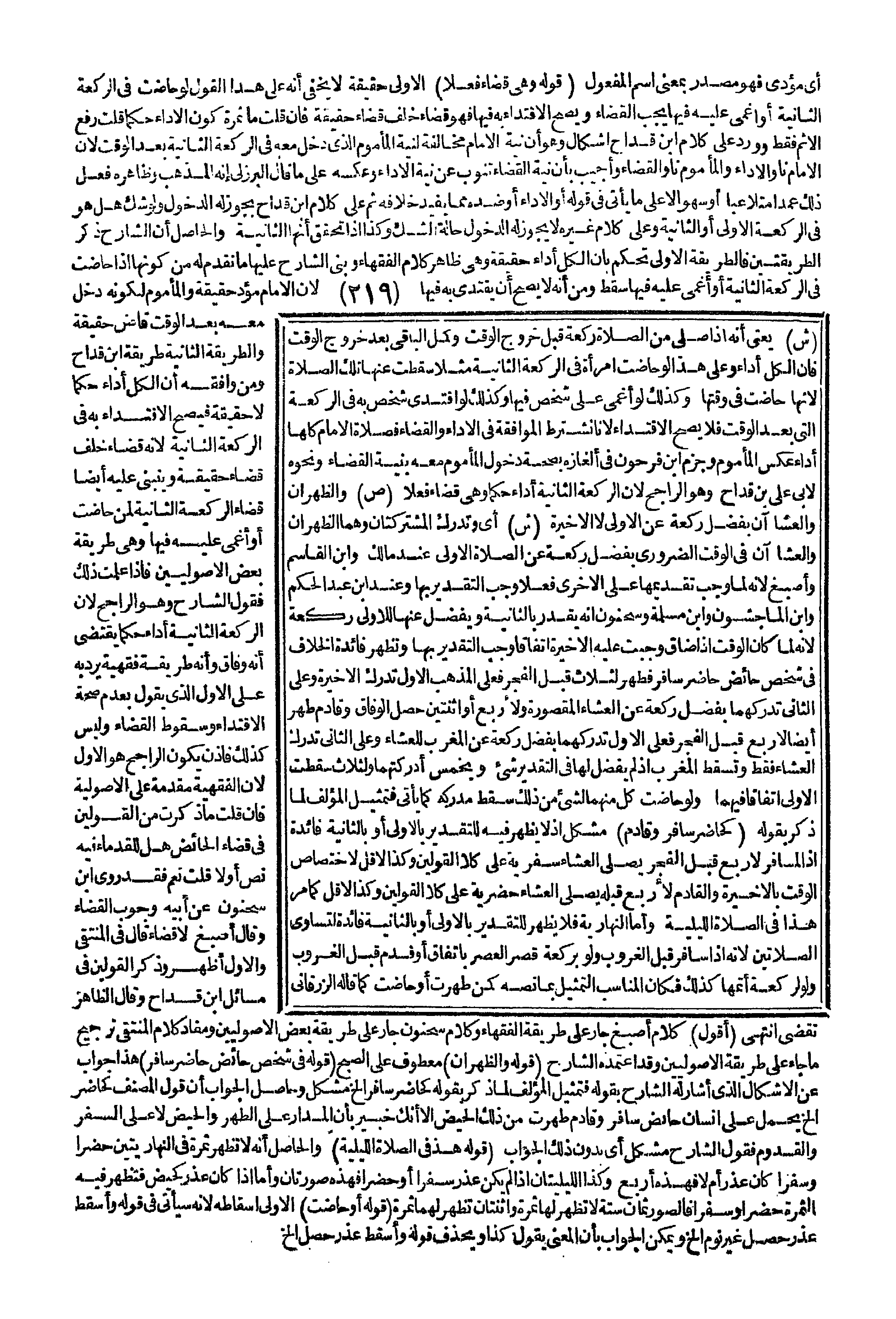 فَإِذَا عَلِمْت ذَلِكَ فَقَوْلُ الشَّارِحِ وَهُوَ الرَّاجِحُ لِأَنَّ الرَّكْعَةَ الثَّانِيَةَ أَدَاءٌ حُكْمًا يَقْتَضِي أَنَّهُ وِفَاقٌ وَأَنَّهُ طَرِيقَةٌ فِقْهِيَّةٌ يُرَدُّ بِهِ عَلَى الْأَوَّلِ الَّذِي يَقُولُ بِعَدَمِ صِحَّةِ الِاقْتِدَاءِ وَسُقُوطِ الْقَضَاءِ وَلَيْسَ كَذَلِكَ فَإِذَنْ يَكُونُ الرَّاجِحُ هُوَ الْأَوَّلَ لِأَنَّ الْفِقْهِيَّةَ مُقَدَّمَةٌ عَلَى الْأُصُولِيَّةِ، فَإِنْ قُلْت مَا ذَكَرْت مِنْ الْقَوْلَيْنِ فِي قَضَاءِ الْحَائِضِ هَلْ لِلْقُدَمَاءِ فِيهِ نَصٌّ أَوْ لَا قُلْت نَعَمْ فَقَدْ رَوَى ابْنُ سَحْنُونَ عَنْ أَبِيهِ وُجُوبَ الْقَضَاءِ وَقَالَ أَصْبَغُ: لَا قَضَاءَ قَالَ فِي الْمُنْتَقَى، وَالْأَوَّلُ أَظْهَرُ وَذَكَرَ الْقَوْلَيْنِ فِي مَسَائِلِ ابْنِ قَدَّاحٍ وَقَالَ الظَّاهِرُ تَقْضِي انْتَهَى (أَقُولُ) كَلَامُ أَصْبَغَ جَارٍ عَلَى طَرِيقَةِ الْفُقَهَاءِ وَكَلَامُ سَحْنُونَ جَارٍ عَلَى طَرِيقَةِ بَعْضِ الْأُصُولِيِّينَ وَمُفَادُ كَلَامِ الْمُنْتَقَى تَرْجِيحُ مَا جَاءَ عَلَى طَرِيقَةِ الْأُصُولِيِّينَ وَقَدْ اعْتَمَدَهُ الشَّارِحُ (قَوْلُهُ: وَالظُّهْرَانِ) مَعْطُوفٌ عَلَى الصُّبْحِ (قَوْلُهُ: فِي شَخْصٍ حَائِضٍ حَاضِرٍ سَافَرَ) هَذَا جَوَابٌ عَنْ الْإِشْكَالِ الَّذِي أَشَارَ بِقَوْلِهِ فَتَمْثِيلُ الْمُؤَلِّفِ لِمَا ذُكِرَ بِقَوْلِهِ كَحَاضِرٍ سَافَرَ إلَخْ مُشْكِلٌ وَحَاصِلُ الْجَوَابِ أَنَّ قَوْلَ الْمُصَنِّفِ كَحَاضِرٍ إلَخْ يُحْمَلُ عَلَى إنْسَانٍ حَائِضٍ سَافَرَ وَقَادِمٍ طَهُرَتْ مِنْ ذَلِكَ الْحَيْضِ إلَّا أَنَّك خَبِيرٌ بِأَنَّ الْمَدَارَ عَلَى الطُّهْرِ، وَالْحَيْضِ لَا عَلَى السَّفَرِ، وَالْقُدُومِ فَقَوْلُ الشَّارِحِ مُشْكِلٌ أَيْ بِدُونِ ذَلِكَ الْجَوَابِ (قَوْلُهُ: هَذَا فِي الصَّلَاةِ اللَّيْلِيَّةِ) ، وَالْحَاصِلُ أَنَّهُ لَا تَظْهَرُ ثَمَرَةٌ فِي النَّهَارِيَّتَيْنِ حَضَرًا وَسَفَرًا كَانَ عُذْرٌ أَمْ لَا فَهَذِهِ أَرْبَعٌ وَكَذَا اللَّيْلِيَّتَانِ إذَا لَمْ يَكُنْ عُذْرٌ سَفَرًا أَوْ حَضَرًا فَهَذِهِ صُورَتَانِ، وَأَمَّا إذَا كَانَ عُذْرٌ كَحَيْضٍ فَتَظْهَرُ فِيهِ الثَّمَرَةُ حَضَرًا أَوْ سَفَرًا فَالصُّوَرُ ثَمَانٍ: سِتَّةٌ لَا تَظْهَرُ لَهَا ثَمَرَةٌ وَاثْنَتَانِ تَظْهَرُ لَهُمَا ثَمَرَةٌ.