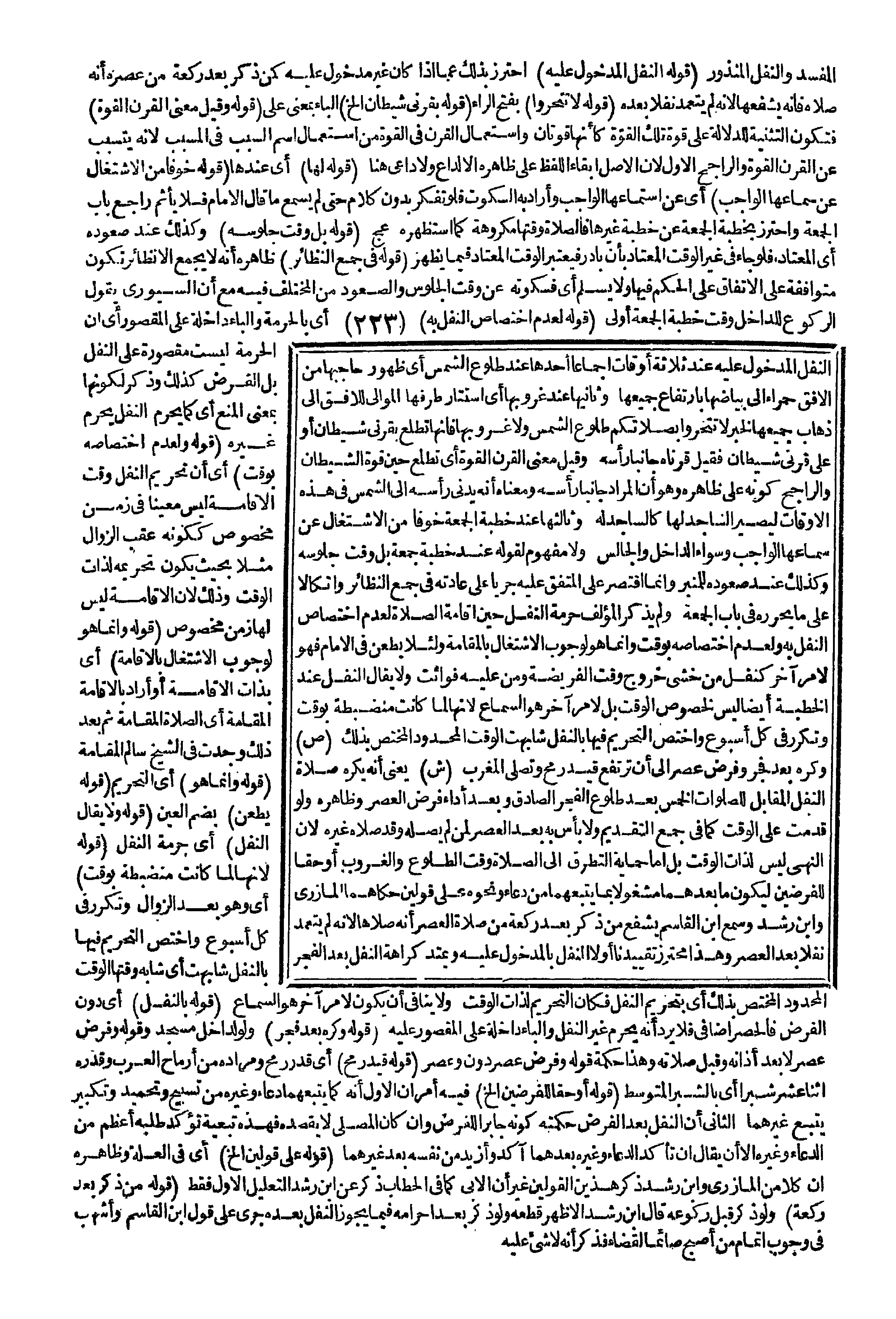 ـــــــــــــــــــــــــــــQالْمُفْسَدِ، وَالنَّفَلِ الْمَنْذُورِ (قَوْلُهُ: النَّفْلِ الْمَدْخُولِ عَلَيْهِ) اُحْتُرِزَ بِذَلِكَ عَمَّا إذَا كَانَ غَيْرَ مَدْخُولٍ عَلَيْهِ كَمَنْ ذَكَرَ بَعْدَ رَكْعَةٍ مِنْ عَصْرِهِ أَنَّهُ صَلَّاهُ، فَإِنَّهُ يُشَفِّعُهَا لِأَنَّهُ لَمْ يَعْتَمِدْ نَفْلًا بَعْدَهُ (قَوْلُهُ: لَا تَتَحَرَّوْا) بِفَتْحِ الرَّاءِ (قَوْلُهُ: بِقَرْنَيْ شَيْطَانٍ إلَخْ) الْبَاءُ بِمَعْنَى عَلَى (قَوْلُهُ: قِيلَ مَعْنَى الْقَرْنِ الْقُوَّةُ) فَتَكُونُ التَّثْنِيَةُ لِلدَّلَالَةِ عَلَى قُوَّةِ تِلْكَ الْقُوَّةِ كَأَنَّهَا قُوَّتَانِ، وَاسْتِعْمَالُ الْقَرْنِ فِي الْقُوَّةِ مِنْ اسْتِعْمَالِ اسْمِ السَّبَبِ فِي الْمُسَبَّبِ لِأَنَّهُ يَتَسَبَّبُ عَنْ الْقَرْنِ الْقُوَّةُ، وَالرَّاجِحُ الْأَوَّلُ لِأَنَّ الْأَصْلَ إبْقَاءُ اللَّفْظِ عَلَى ظَاهِرِهِ إلَّا لِدَاعٍ وَلَا دَاعِيَ هُنَا (قَوْلُهُ: لَهَا) أَيْ عِنْدَهَا (قَوْلُهُ: خَوْفًا مِنْ الِاشْتِغَالِ عَنْ سَمَاعِهَا الْوَاجِبَ) أَيْ عَنْ اسْتِمَاعِهَا الْوَاجِبَ وَأَرَادَ بِهِ السُّكُوتَ فَلَوْ تَفَكَّرَ بِدُونِ كَلَامٍ حَتَّى لَمْ يَسْمَعْ مَا قَالَ الْإِمَامُ فَلَا يَأْثَمُ رَاجِعْ بَابَ الْجُمُعَةِ وَاحْتُرِزَ بِخُطْبَةِ الْجُمُعَةِ عَنْ خُطْبَةِ غَيْرِهَا فَالصَّلَاةُ وَقْتَهَا مَكْرُوهَةٌ كَمَا اسْتَظْهَرَهُ عج (قَوْلُهُ: بَلْ وَقْتَ جُلُوسِهِ) وَكَذَلِكَ عِنْدَ صُعُودِهِ أَيْ الْمُعْتَادِ فَلَوْ جَاءَ فِي غَيْرِ الْوَقْتِ الْمُعْتَادِ بِأَنْ بَادَرَ فَيُعْتَبَرُ الْوَقْتُ الْمُعْتَادُ فِيمَا يَظْهَرُ (قَوْلُهُ: فِي جَمْعِ النَّظَائِرِ) ظَاهِرُهُ أَنَّهُ لَا يَجْمَعُ إلَّا نَظَائِرَ تَكُونُ مُتَوَافِقَةً عَلَى الْحُكْمِ فِيهَا وَلَا يُسَلِّمُ أَيْ فَسُكُوتُهُ عَنْ وَقْتِ الْجُلُوسِ، وَالصُّعُودِ مِنْ الْمُخْتَلَفِ فِيهِ مَعَ أَنَّ السُّيُورِيَّ يَقُولُ الرُّكُوعُ لِلدَّاخِلِ وَقْتَ خُطْبَةِ الْجُمُعَةِ أَوْلَى.