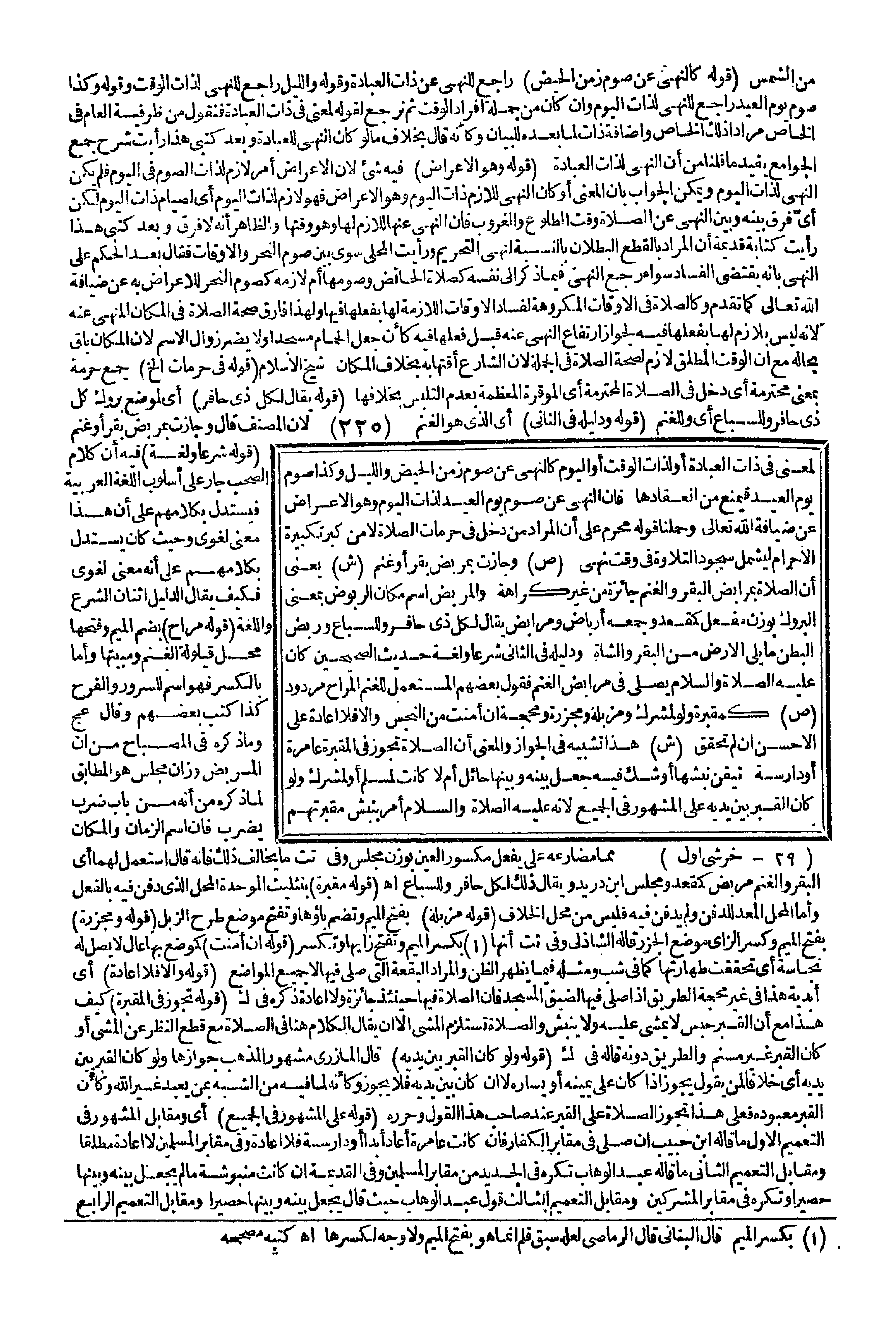 لِمَعْنًى فِي ذَاتِ الْعِبَادَةِ أَوْ لِذَاتِ الْوَقْتِ أَوْ الْيَوْمِ كَالنَّهْيِ عَنْ صَوْمِ زَمَنِ الْحَيْضِ وَاللَّيْلِ وَكَذَا صَوْمُ يَوْمِ الْعِيدِ فَيُمْنَعُ مِنْ انْعِقَادِهَا، فَإِنَّ النَّهْيَ عَنْ صَوْمِ يَوْمِ الْعِيدِ لِذَاتِ الْيَوْمِ وَهُوَ الْإِعْرَاضُ عَنْ ضِيَافَةِ اللَّهِ تَعَالَى وَحَمَلْنَا قَوْلَهُ: مُحْرِمٌ عَلَى أَنَّ الْمُرَادَ مَنْ دَخَلَ فِي حُرُمَاتِ الصَّلَاةِ لَا مَنْ كَبَّرَ تَكْبِيرَةَ الْإِحْرَامِ لِيَشْمَلَ سُجُودَ التِّلَاوَةِ فِي وَقْتِ نَهْيٍ.