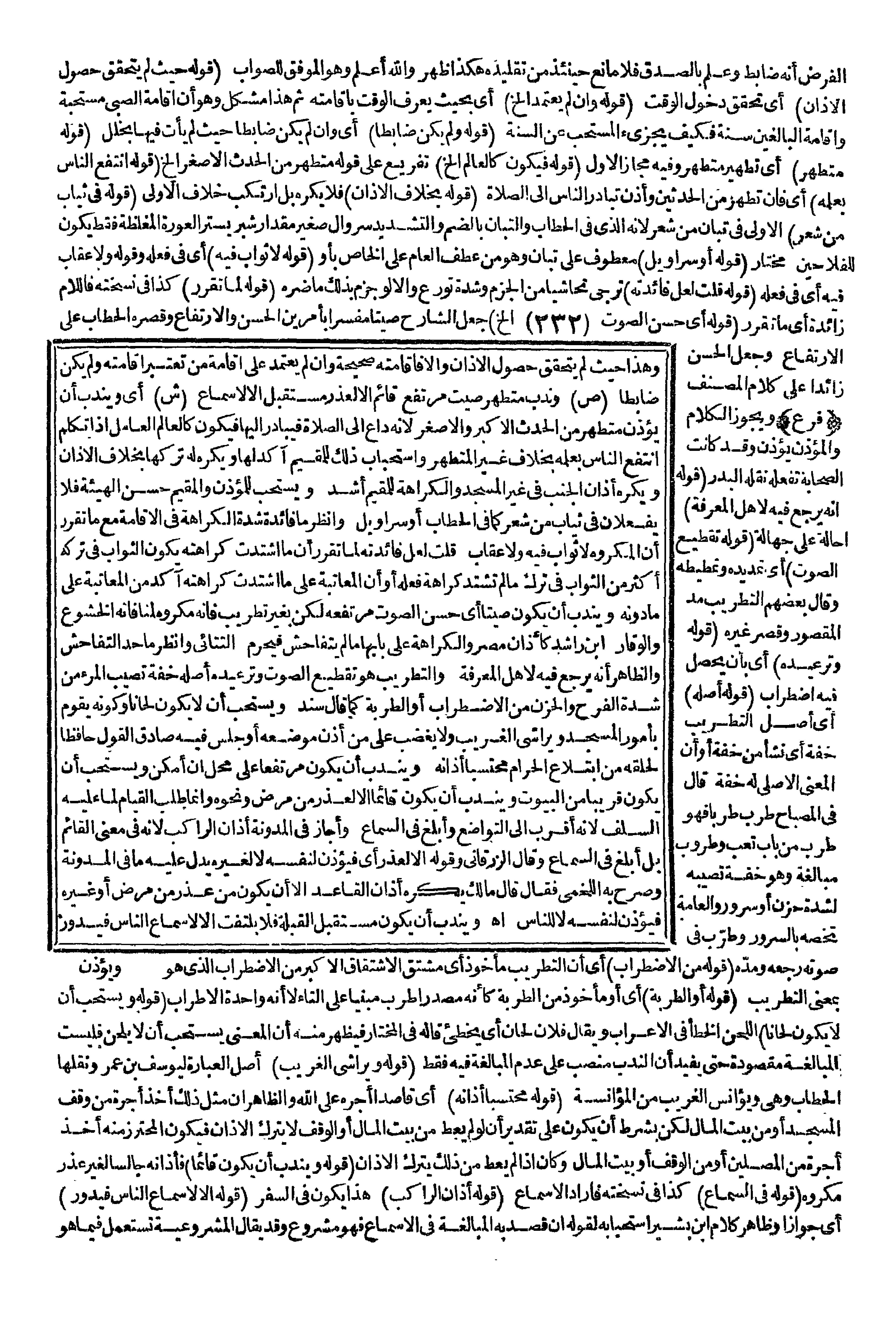 (فَرْعٌ) وَيَجُوزُ الْكَلَامُ وَالْمُؤَذِّنُ يُؤَذِّنُ وَقَدْ كَانَتْ الصَّحَابَةُ تَفْعَلُهُ نَقَلَهُ الْبَدْرُ (قَوْلُهُ أَنَّهُ يُرْجَعُ فِيهِ لِأَهْلِ الْمَعْرِفَةِ) إحَالَةٌ عَلَى جَهَالَةٍ.