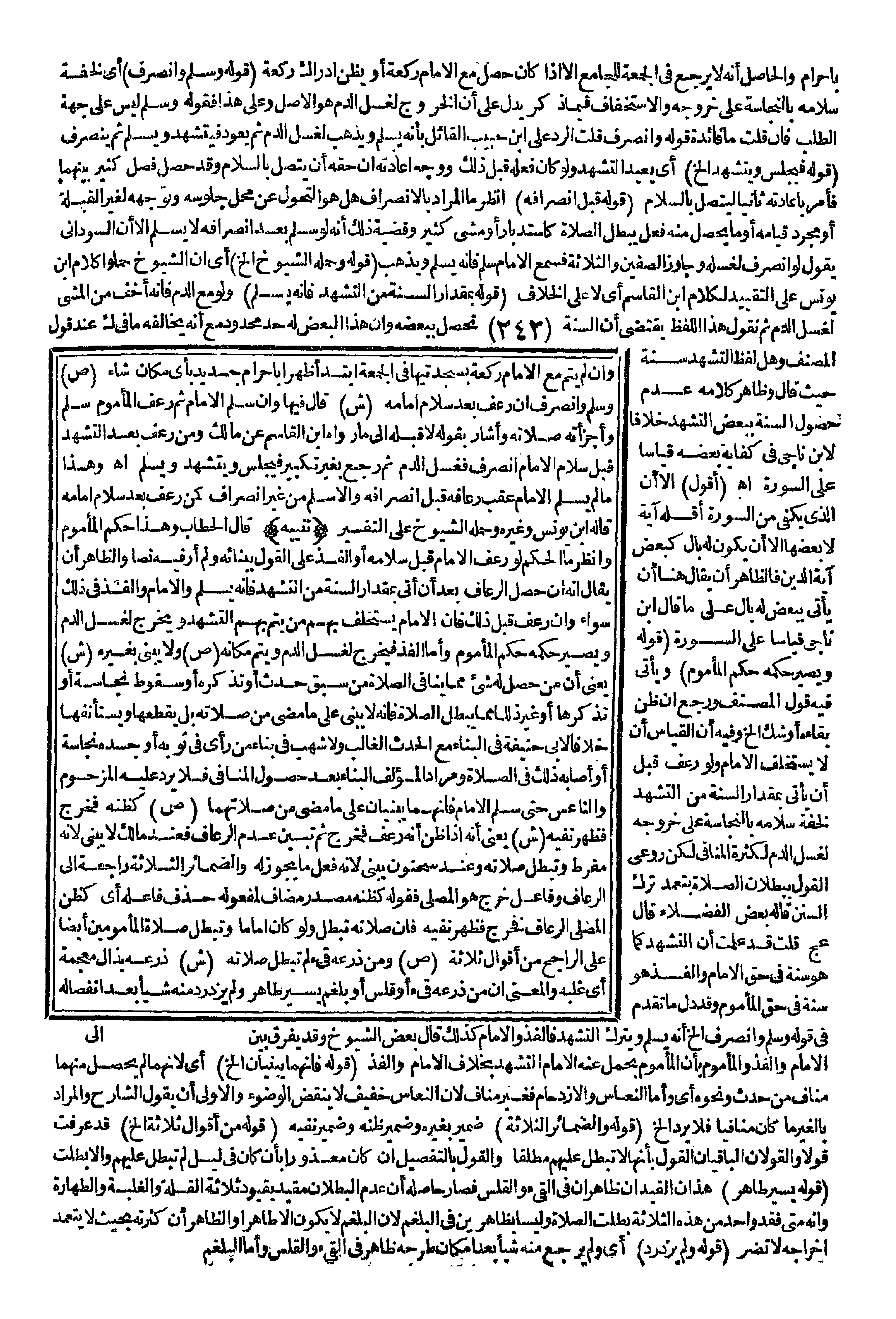 (قَوْلُهُ بِمِقْدَارِ السُّنَّةِ مِنْ التَّشَهُّدِ فَإِنَّهُ يُسَلِّمُ) وَلَوْ مَعَ الدَّمِ فَإِنَّهُ أَخَفُّ مِنْ الْمَشْيِ لِغَسْلِ الدَّمِ ثُمَّ نَقُولُ هَذَا اللَّفْظُ يَقْتَضِي أَنَّ السُّنَّةَ تَحْصُلُ بِبَعْضِهِ وَأَنَّ هَذَا الْبَعْضَ لَهُ حَدٌّ مَحْدُودٌ مَعَ أَنَّهُ يُخَالِفُهُ مَا فِي ك عِنْدَ قَوْلِ الْمُصَنِّفِ وَهَلْ لَفْظُ التَّشَهُّدِ سُنَّةٌ حَيْثُ قَالَ وَظَاهِرُ كَلَامِهِ عَدَمُ حُصُولِ السُّنَّةِ بِبَعْضِ التَّشَهُّدِ خِلَافًا لِابْنِ نَاجِي فِي كِفَايَةِ بَعْضِهِ قِيَاسًا عَلَى السُّورَةِ اهـ.