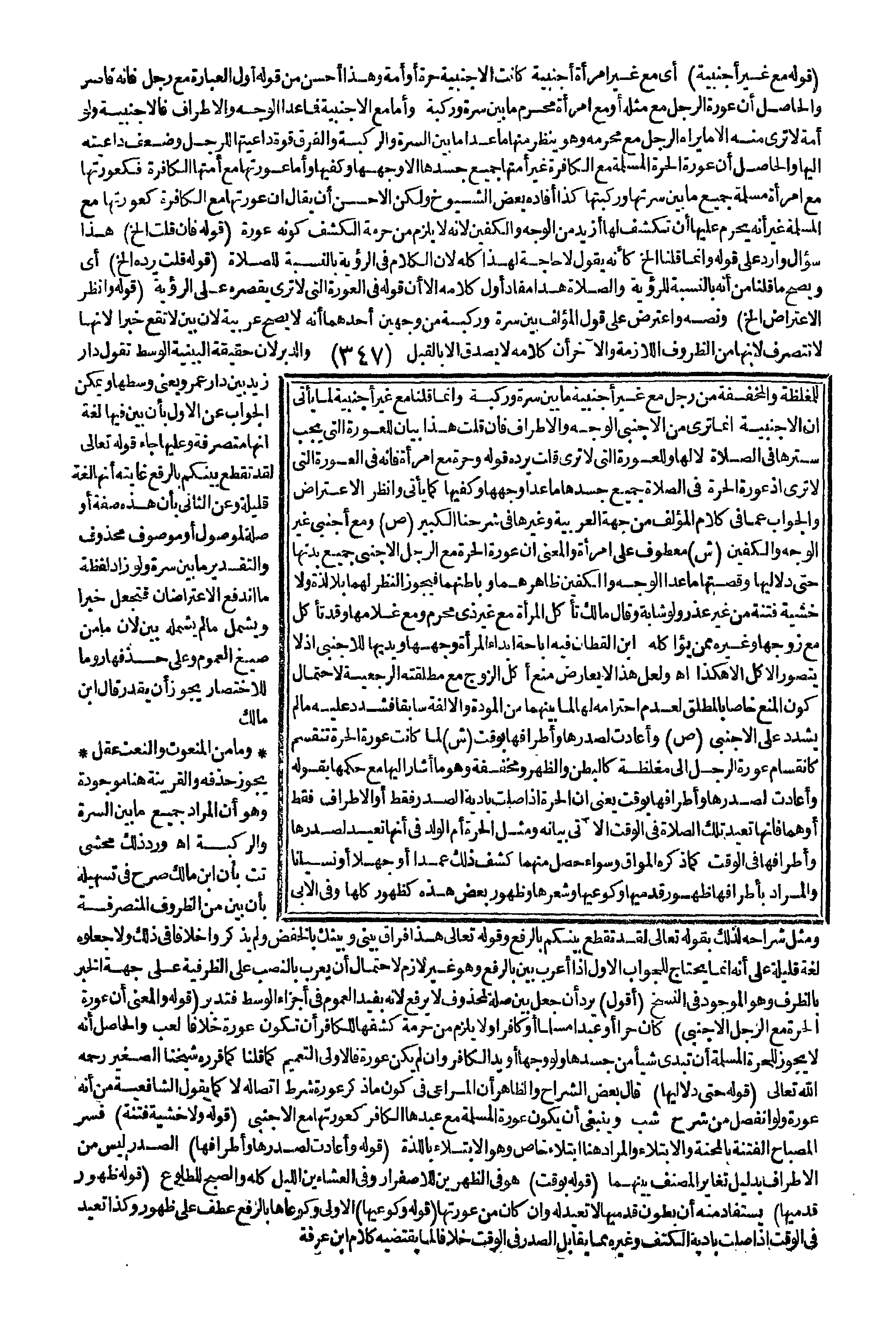 (أَقُولُ) يَرِدُ أَنَّ جَعْلَ بَيْنَ صِلَةً لِمَحْذُوفٍ لَا يُرْفَعُ؛ لِأَنَّهُ يُفِيدُ الْعُمُومَ فِي أَجْزَاءِ الْوَسَطِ فَتَدَبَّرْ (قَوْلُهُ وَالْمَعْنَى أَنَّ عَوْرَةَ الْحُرَّةِ مَعَ الرَّجُلِ الْأَجْنَبِيِّ) كَانَ حُرًّا أَوْ عَبْدًا مُسْلِمًا أَوْ كَافِرًا وَلَا يَلْزَمُ مِنْ حُرْمَةِ كَشْفِهَا لِلْكَافِرِ أَنْ تَكُونَ عَوْرَةً خِلَافًا لعب وَالْحَاصِلُ أَنَّهُ لَا يَجُوزُ لِلْحُرَّةِ الْمُسْلِمَةِ أَنْ تُبْدِيَ شَيْئًا مِنْ جَسَدِهَا وَلَوْ وَجْهًا أَوْ يَدًا لِكَافِرٍ وَإِنْ لَمْ يَكُنْ عَوْرَةً فَالْأَوْلَى التَّعْمِيمُ كَمَا قُلْنَا كَمَا قَرَّرَهُ شَيْخُنَا الصَّغِيرُ - رَحِمَهُ اللَّهُ تَعَالَى -.