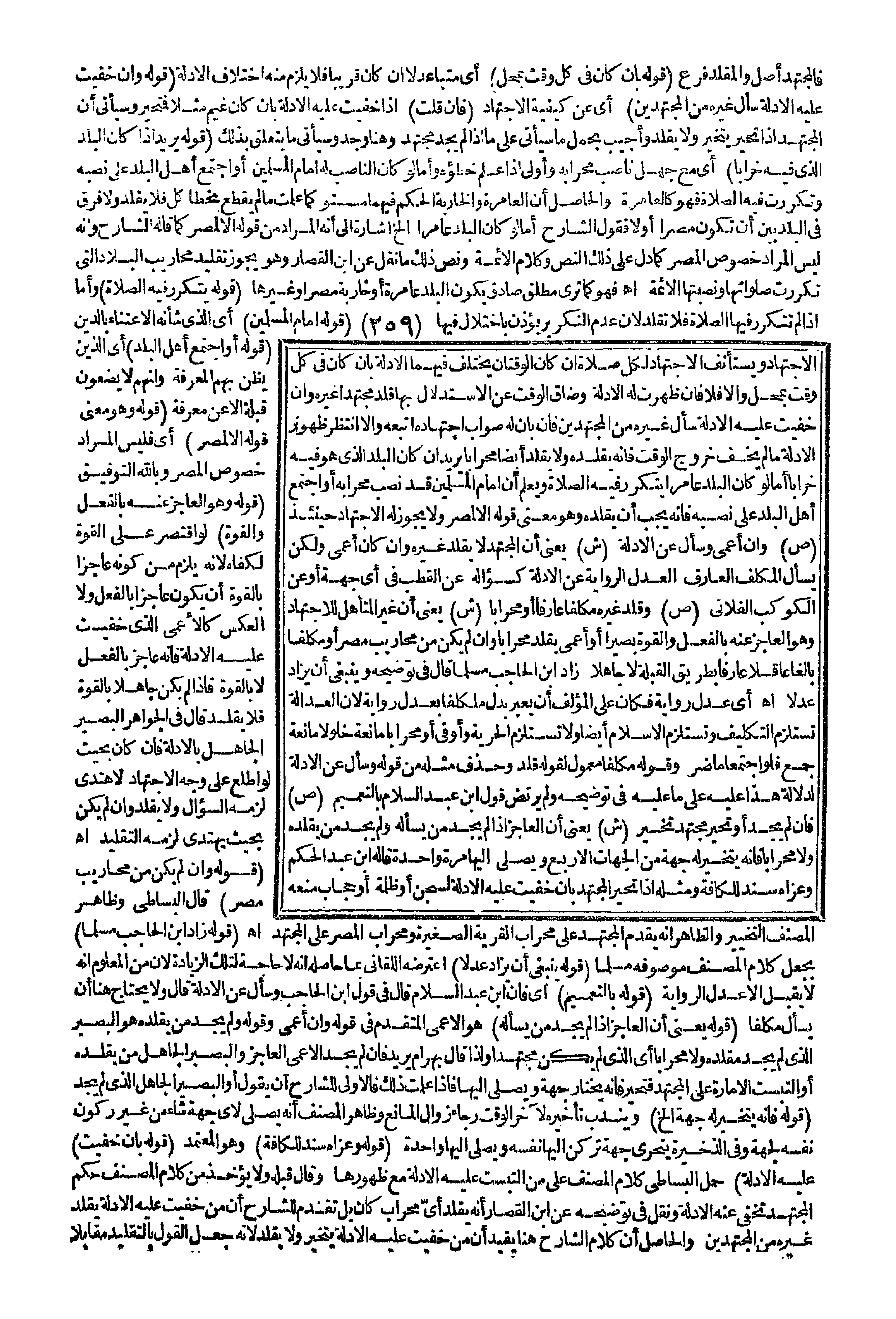 (قَوْلُهُ بِأَنْ خَفِيَتْ) عَلَيْهِ الْأَدِلَّةُ حَمَلَ الْبِسَاطِيُّ كَلَامَ الْمُصَنِّفِ عَلَى مَنْ الْتَبَسَتْ عَلَيْهِ الْأَدِلَّةُ مَعَ ظُهُورِهَا وَقَالَ قَبْلَهُ: وَلَا يُؤْخَذُ مِنْ كَلَامِ الْمُصَنِّفِ حُكْمُ الْمُجْتَهِدِ تَخْفَى عَنْهُ الْأَدِلَّةُ، وَنَقَلَ فِي تَوْضِيحِهِ عَنْ ابْنِ الْقَصَّارِ أَنَّهُ يُقَلِّدُ أَيَّ مِحْرَابٍ كَانَ بَلْ تَقَدَّمَ لِلشَّارِحِ أَنَّ مَنْ خَفِيَتْ عَلَيْهِ الْأَدِلَّةُ يُقَلِّدُ غَيْرَهُ مِنْ الْمُجْتَهِدِينَ وَالْحَاصِلُ أَنَّ كَلَامَ الشَّارِحِ هُنَا يُفِيدُ أَنَّ مَنْ خَفِيَتْ عَلَيْهِ الْأَدِلَّةُ يَتَخَيَّرُ وَلَا يُقَلِّدُ؛ لِأَنَّهُ جَعَلَ الْقَوْلَ بِالتَّقْلِيدِ مُقَابِلًا