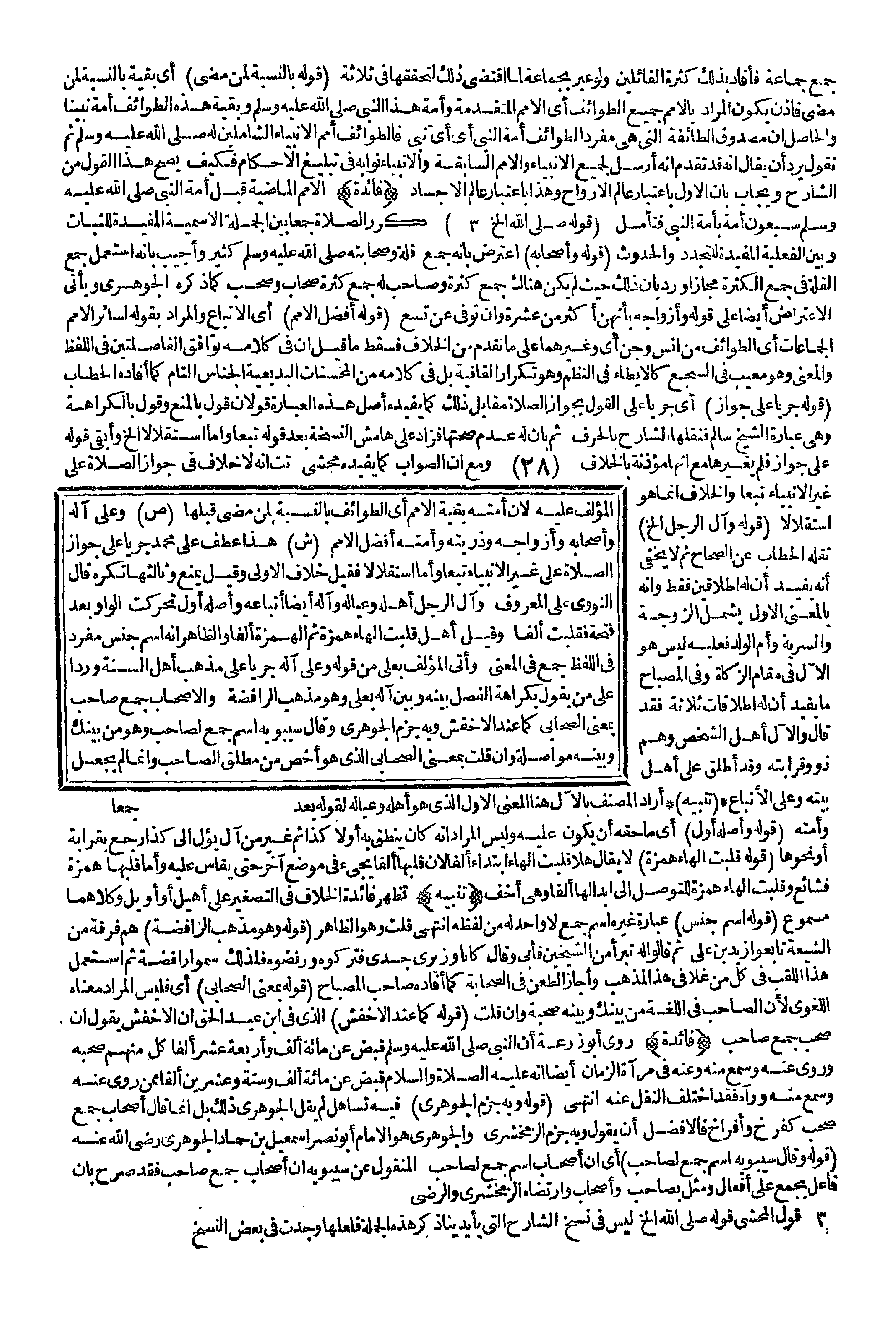 (قَوْلُهُ وَأَصْحَابِهِ) اُعْتُرِضَ بِأَنَّهُ جَمْعُ قِلَّةٍ وَصَحَابَتُهُ - صَلَّى اللَّهُ عَلَيْهِ وَسَلَّمَ - كَثِيرٌ وَأُجِيبُ بِأَنَّهُ اسْتَعْمَلَ جَمْعَ الْقِلَّةِ فِي جَمْعِ الْكَثْرَةِ مَجَازًا وَرُدَّ بِأَنَّ ذَلِكَ حَيْثُ لَمْ يَكُنْ هُنَاكَ جَمْعُ كَثْرَةٍ وَصَاحِبُ لَهُ جَمْعُ كَثْرَةٍ صِحَابٌ وَصَحْبٌ كَمَا ذَكَرَهُ الْجَوْهَرِيُّ وَيَأْتِي الِاعْتِرَاضُ أَيْضًا عَلَى قَوْلِهِ وَأَزْوَاجِهِ بِأَنَّهُنَّ أَكْثَرُ مِنْ عَشْرَةٍ، وَإِنْ تُوُفِّيَ عَنْ تِسْعٍ (قَوْلُهُ أَفْضَلُ الْأُمَمِ) أَيْ الِاتِّبَاعُ وَالْمُرَادُ بِقَوْلِهِ لِسَائِرِ الْأُمَمِ الْجَمَاعَاتُ أَيْ الطَّوَائِفُ مِنْ إنْسٍ وَجِنٍّ أَيْ وَغَيْرِهِمَا عَلَى مَا تَقَدَّمَ مِنْ الْخِلَافِ فَسَقَطَ مَا قِيلَ إنَّ فِي كَلَامِهِ تَوَافُقُ الْفَاصِلَتَيْنِ فِي اللَّفْظِ وَالْمَعْنَى، وَهُوَ مَعِيبٌ فِي السَّجْعِ كَالْإِيطَاءِ فِي النَّظْمِ، وَهُوَ تَكْرَارُ الْقَافِيَّةِ بَلْ فِي كَلَامِهِ مِنْ الْمُحَسِّنَاتِ الْبَدِيعِيَّةِ الْجِنَاسُ التَّامُّ كَمَا أَفَادَهُ الْحَطَّابُ (قَوْلُهُ جَرْيًا عَلَى جَوَازِ) أَيْ جَرْيًا عَلَى الْقَوْلِ بِجَوَازِ الصَّلَاةِ مُقَابِلَ ذَلِكَ كَمَا يُفِيدُهُ أَصْلُ هَذِهِ الْعِبَارَةِ قَوْلَانِ قَوْلٌ بِالْمَنْعِ وَقَوْلٌ بِالْكَرَاهَةِ وَهِيَ عِبَارَةُ الشَّيْخِ سَالِمٍ فَنَقَلَهَا الشَّارِحُ بِالْحَرْفِ، ثُمَّ بَانَ لَهُ عَدَمُ صِحَّتِهَا فَزَادَ عَلَى هَامِشِ النُّسْخَةِ بَعْدَ قَوْلِهِ تَبَعًا، وَأَمَّا اسْتِقْلَالًا إلَخْ وَأَبْقَى قَوْلَهُ عَلَى جَوَازِ فَلَمْ يُغَيِّرْهَا مَعَ أَنَّهَا مُؤْذِنَةٌ بِالْخِلَافِ وَمَعَ أَنَّ الصَّوَابَ كَمَا يُفِيدُهُ مُحَشِّي تت أَنَّهُ لَا خِلَافَ فِي جَوَازِ الصَّلَاةِ عَلَى غَيْرِ الْأَنْبِيَاءِ تَبَعًا وَالْخِلَافُ إنَّمَا هُوَ اسْتِقْلَالًا (قَوْلُهُ وَآلُ الرَّجُلِ إلَخْ) نَقَلَهُ الْحَطَّابُ عَنْ الصِّحَاحِ، ثُمَّ لَا يَخْفَى أَنَّهُ يُفِيدُ أَنَّ لَهُ اطِّلَاقَيْنِ فَقَطْ وَأَنَّهُ بِالْمَعْنَى الْأَوَّلِ يَشْمَلُ الزَّوْجَةَ وَالسُّرِّيَّةَ وَأُمَّ الْوَلَدِ فَعَلَيْهِ لَيْسَ هُوَ الْآلُ فِي مَقَامِ الزَّكَاةِ وَفِي الْمِصْبَاحِ مَا يُفِيدُ أَنَّ لَهُ اطِّلَاقَاتٍ ثَلَاثَةٍ فَقَدْ قَالَ وَالْآلُ أَهْلُ الشَّخْصِ وَهُمْ ذُو قَرَابَتِهِ وَقَدْ أُطْلِقَ عَلَى أَهْلِ بَيْتِهِ وَعَلَى الْأَتْبَاعِ.