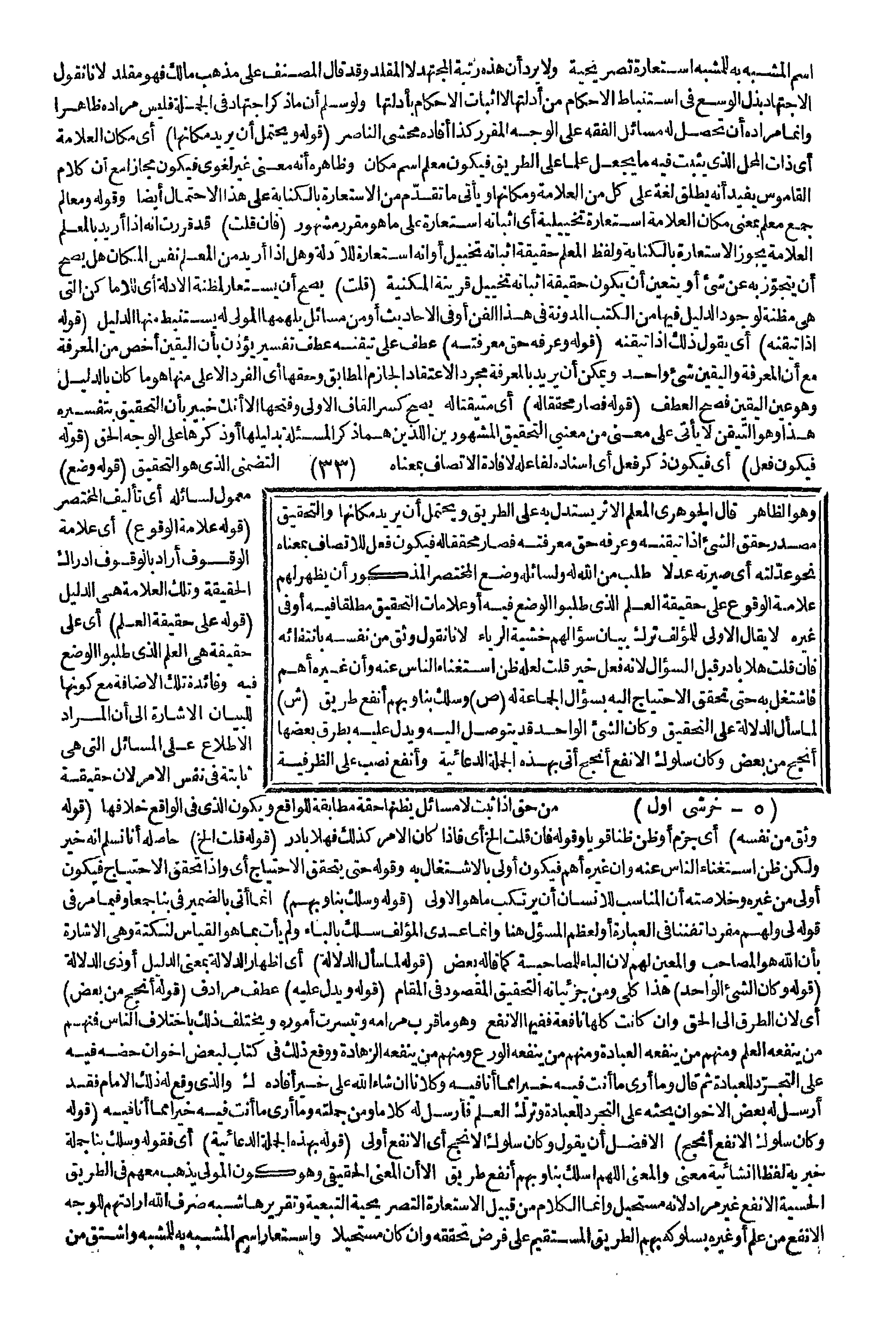 ـــــــــــــــــــــــــــــQاسْمَ الْمُشَبَّهِ بِهِ لِلْمُشَبَّهِ اسْتِعَارَةٌ تَصْرِيحِيَّةٌ وَلَا يَرِدُ أَنَّ هَذِهِ رُتْبَةُ الْمُجْتَهِدِ لَا الْمُقَلِّدِ وَقَدْ قَالَ الْمُصَنِّفُ عَلَى مَذْهَبِ مَالِكٍ فَهُوَ مُقَلِّدٌ؛ لِأَنَّا نَقُولُ الِاجْتِهَادُ بَذْلُ الْوُسْعِ فِي اسْتِنْبَاطِ الْأَحْكَامِ مِنْ أَدِلَّتِهَا لَا إثْبَاتُ الْأَحْكَامِ بِأَدِلَّتِهَا وَلَوْ سُلِّمَ أَنَّ مَا ذَكَرَ اجْتِهَادٌ فِي الْجُمْلَةِ فَلَيْسَ مُرَادُهُ ظَاهِرًا، وَإِنَّمَا مُرَادُهُ أَنْ تَحْصُلَ لَهُ مَسَائِلُ الْفِقْهِ عَلَى الْوَجْهِ الْمُقَرَّرِ كَذَا أَفَادَهُ مُحَشِّي النَّاصِرِ.