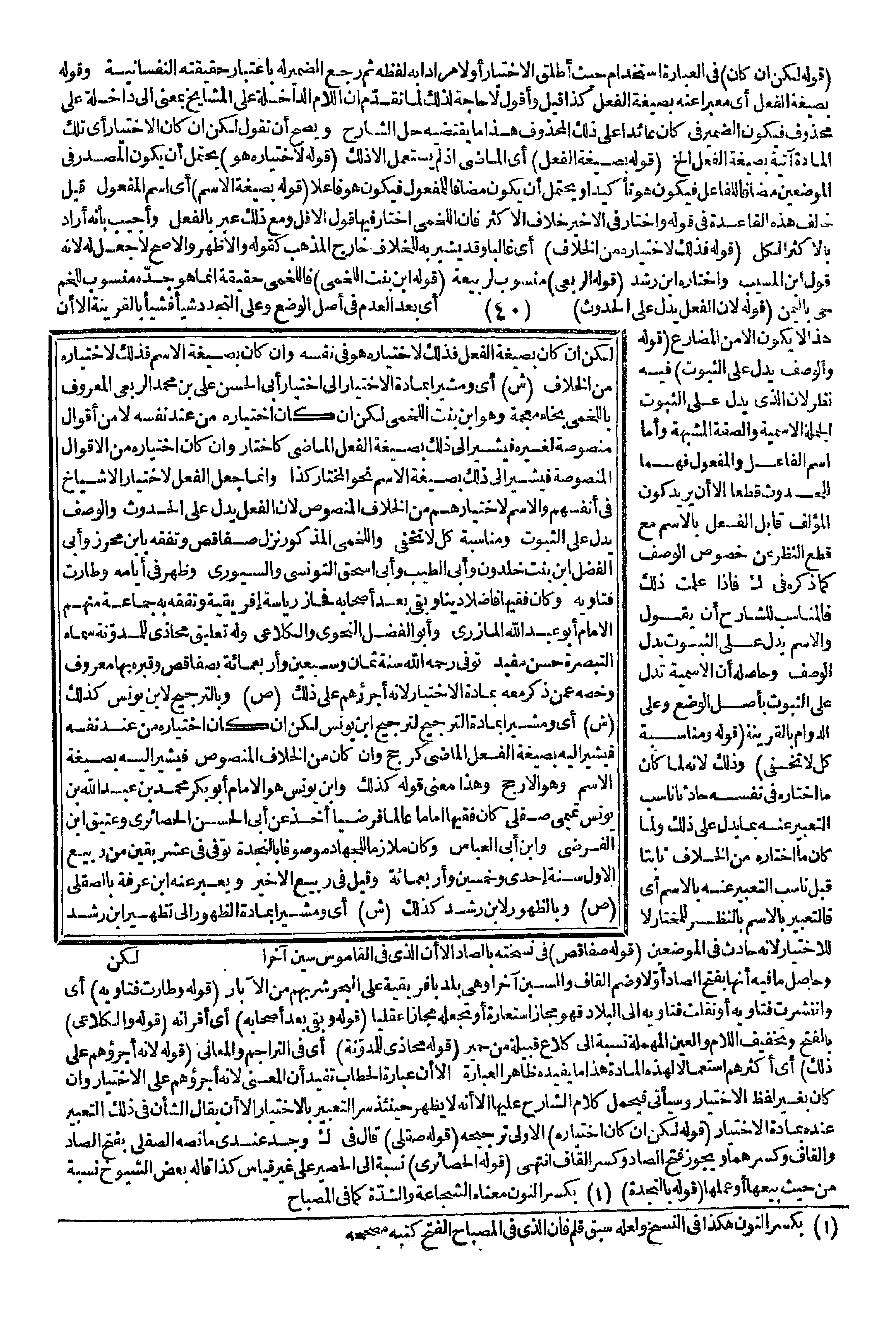 لَكِنْ إنْ كَانَ بِصِيغَةِ الْفِعْلِ فَذَلِكَ لِاخْتِيَارِهِ هُوَ فِي نَفْسِهِ، وَإِنْ كَانَ بِصِيغَةِ الِاسْمِ فَذَلِكَ لِاخْتِيَارِهِ مِنْ الْخِلَافِ (ش) أَيْ وَمُشِيرًا بِمَادَّةِ الِاخْتِيَارِ إلَى اخْتِيَارِ أَبِي الْحَسَنِ عَلِيِّ بْنِ مُحَمَّدِ الرَّبَعِيِّ الْمَعْرُوفِ بِاللَّخْمِيِّ بِخَاءٍ مُعْجَمَةٍ، وَهُوَ ابْنُ بِنْتِ اللَّخْمِيِّ لَكِنْ إنْ كَانَ اخْتِيَارُهُ مِنْ عِنْدِ نَفْسِهِ لَا مِنْ أَقْوَالٍ مَنْصُوصَةٍ لِغَيْرِهِ فَيُشِيرُ إلَى ذَلِكَ بِصِيغَةِ الْفِعْلِ الْمَاضِي كَاخْتَارَ، وَإِنْ كَانَ اخْتِيَارُهُ مِنْ الْأَقْوَالِ الْمَنْصُوصَةِ فَيُشِيرُ إلَى ذَلِكَ بِصِيغَةِ الِاسْمِ نَحْوَ الْمُخْتَارِ كَذَا وَإِنَّمَا جَعَلَ الْفِعْلَ لِاخْتِيَارِ الْأَشْيَاخِ فِي أَنْفُسِهِمْ وَالِاسْمَ لِاخْتِيَارِهِمْ مِنْ الْخِلَافِ الْمَنْصُوصِ. لِأَنَّ الْفِعْلَ يَدُلُّ عَلَى الْحُدُوثِ وَالْوَصْفَ يَدُلُّ عَلَى الثُّبُوتِ وَمُنَاسَبَةُ كُلٍّ لَا تَخْفَى وَاللَّخْمِيُّ الْمَذْكُورُ نَزَلَ صَفَاقُصَ وَتَفَقَّهَ بِابْنِ مُحْرِزٍ وَأَبِي الْفَضْلِ ابْنِ بِنْتِ خَلْدُونٍ وَأَبِي الطَّيِّبِ وَأَبِي إِسْحَاقَ التُّونُسِيِّ وَالسُّيُورِيُّ وَظَهَرَ فِي أَيَّامِهِ وَطَارَتْ فَتَاوِيهِ وَكَانَ فَقِيهًا فَاضِلًا دَيِّنًا وَبَقِيَ بَعْدَ أَصْحَابِهِ فَحَازَ رِيَاسَةَ إفْرِيقِيَةَ وَتَفَقَّهَ بِهِ جَمَاعَةٌ مِنْهُمْ الْإِمَامُ أَبُو عَبْدِ اللَّهِ الْمَازِرِيُّ وَأَبُو الْفَضْلِ النَّحْوِيُّ وَالْكَلَاعِيُّ وَلَهُ تَعْلِيقٌ مُحَاذِي لِلْمُدَوَّنَةِ سَمَّاهُ التَّبْصِرَةَ حَسَنٌ مُفِيدٌ تَوَفَّى - رَحِمَهُ اللَّهُ - سَنَةَ ثَمَانٍ وَسَبْعِينَ وَأَرْبَعَمِائَةٍ بِصَفَاقِس وَقَبْرُهُ بِهَا مَعْرُوفٌ وَخَصَّهُ عَمَّنْ ذَكَرَ مَعَهُ بِمَادَّةِ الِاخْتِيَارِ؛ لِأَنَّهُ أَجْرَؤُهُمْ عَلَى ذَلِكَ.