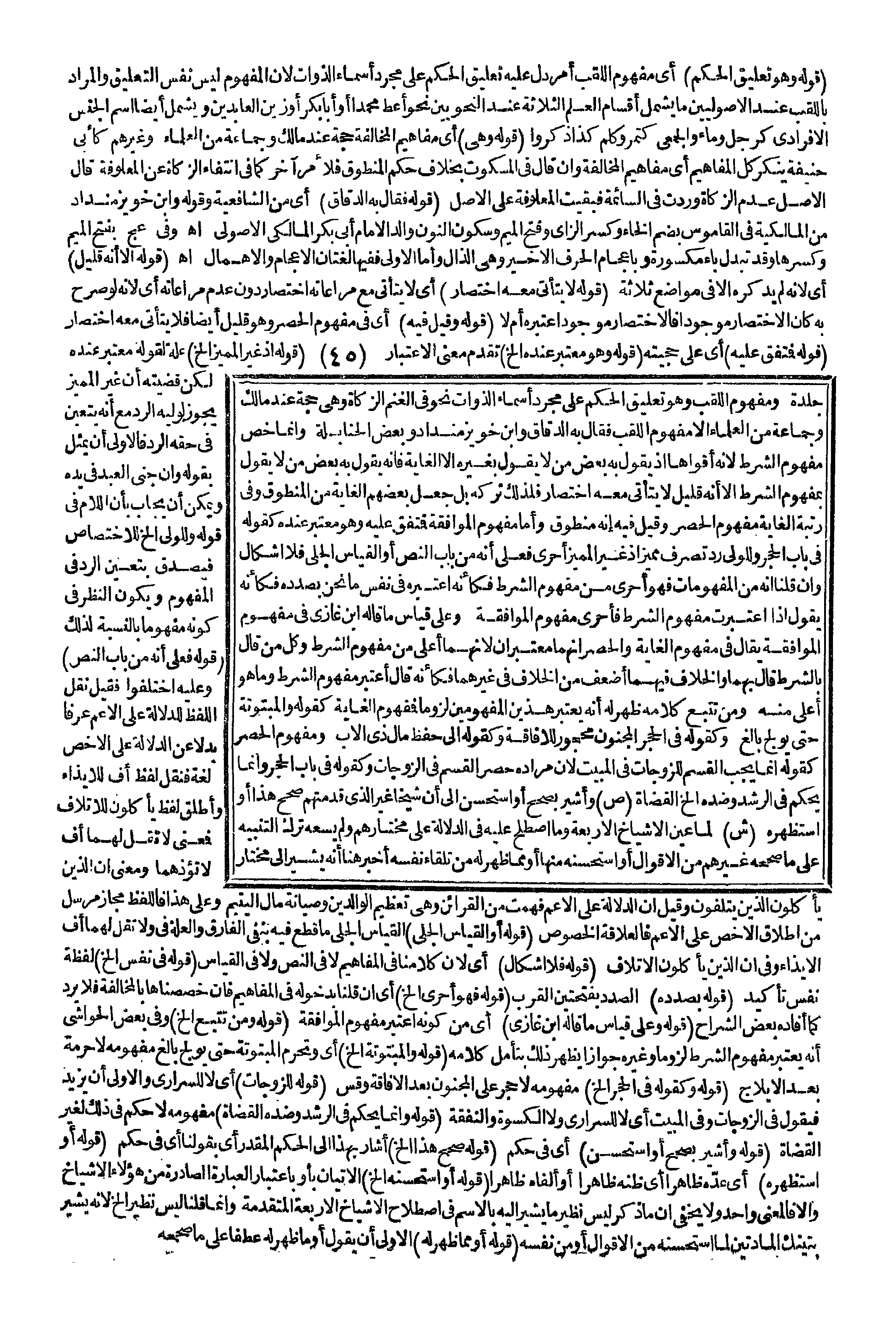 ـــــــــــــــــــــــــــــQقَوْلُهُ، وَهُوَ تَعْلِيقُ الْحُكْمِ) أَيْ مَفْهُومُ اللَّقَبِ أَمْرٌ دَلَّ عَلَيْهِ تَعْلِيقُ الْحُكْمِ عَلَى مُجَرَّدِ أَسْمَاءِ الذَّوَاتِ؛ لِأَنَّ الْمَفْهُومَ لَيْسَ نَفْسَ التَّعْلِيقِ وَالْمُرَادُ بِاللَّقَبِ عِنْدَ الْأُصُولِيِّينَ مَا يَشْمَلُ أَقْسَامَ الْعَلَمِ الثَّلَاثَةِ عِنْدَ النَّحْوِيِّينَ نَحْوَ أَعْطِ مُحَمَّدًا أَوْ أَبَا بَكْرٍ أَوْ زَيْنَ الْعَابِدِينَ وَيَشْمَلُ أَيْضًا اسْمَ الْجِنْسِ الْإِفْرَادِيَّ كَرَجُلٍ وَمَاءٍ وَالْجَمْعِيَّ كَتَمْرٍ وَكَلِمٍ كَذَا ذَكَرُوا (قَوْلُهُ وَهِيَ) أَيْ مَفَاهِيمُ الْمُخَالَفَةِ حُجَّةٌ عِنْدَ مَالِكٍ وَجَمَاعَةٌ مِنْ الْعُلَمَاءِ وَغَيْرُهُمْ كَأَبِي حَنِيفَةَ يُنْكِرُ كُلَّ الْمَفَاهِيمِ أَيْ مَفَاهِيمَ الْمُخَالَفَةِ، وَإِنْ قَالَ فِي الْمَسْكُوتِ بِخِلَافِ حُكْمِ الْمَنْطُوقِ فَلِأَمْرٍ آخَرَ كَمَا فِي انْتِفَاءِ الزَّكَاةِ عَنْ الْمَعْلُوفَةِ قَالَ الْأَصْلُ عَدَمُ الذَّكَاةِ وَرَدَتْ فِي السَّائِمَةِ فَبَقِيَتْ الْمَعْلُوفَةُ عَلَى الْأَصْلِ (قَوْلُهُ فَقَالَ بِهِ الدَّقَّاقُ) أَيْ مِنْ الشَّافِعِيَّةِ وَقَوْلُهُ وَابْنُ خُوَيْزِ مَنْدَادٍ مِنْ الْمَالِكِيَّةِ فِي الْقَامُوسِ بِضَمِّ الْخَاءِ وَكَسْرِ الزَّاي وَفَتْحِ الْمِيمِ وَسُكُونِ النُّونِ وَالِدُ الْإِمَامِ أَبِي بَكْرٍ الْمَالِكِيِّ الْأُصُولِيِّ اهـ.
