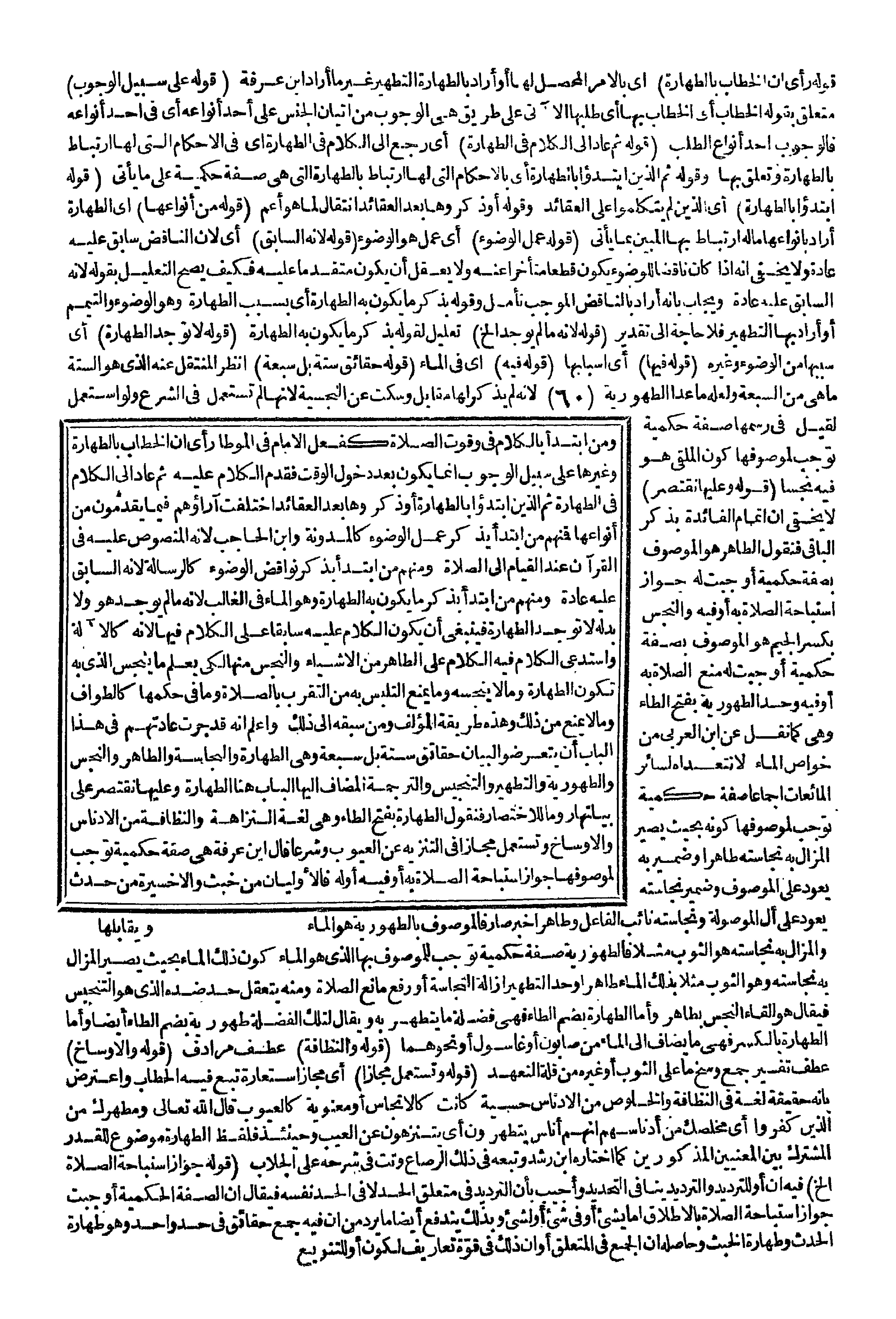 وَحِينَئِذٍ فَلَفْظُ الطَّهَارَةِ مَوْضُوعٌ لِلْقَدْرِ الْمُشْتَرَكِ بَيْنَ الْمَعْنَيَيْنِ الْمَذْكُورَيْنِ كَمَا اخْتَارَهُ ابْنُ رُشْدٍ وَتَبِعَهُ فِي ذَلِكَ الرَّصَّاعُ وتت فِي شَرْحِهِ عَلَى الْجَلَّابِ (قَوْلُ جَوَازَ اسْتِبَاحَةِ الصَّلَاةِ إلَخْ) فِيهِ أَنَّ أَوْ لِلتَّرْدِيدِ وَالتَّرْدِيدُ يُنَافِي التَّحْدِيدَ وَأُجِيبُ بِأَنَّ التَّرْدِيدَ فِي مُتَعَلِّقِ الْحَدِّ لَا فِي الْحَدِّ نَفْسِهِ فَيُقَالُ أَنَّ الصُّفَّةَ الْحُكْمِيَّةَ أَوْجَبَتْ جَوَازَ اسْتِبَاحَةِ الصَّلَاةِ بِالْإِطْلَاقِ إمَّا بِشَيْءٍ أَوْ فِي شَيْءٍ أَوْ لِشَيْءٍ، وَبِذَلِكَ يَنْدَفِعُ أَيْضًا مَا يَرِدُ مِنْ أَنَّ فِيهِ جَمْعَ حَقَائِقَ فِي حَدٍّ وَاحِدٍ، وَهُوَ طَهَارَةُ الْحَدَثِ وَطَهَارَةُ الْخَبَثِ وَحَاصِلُهُ أَنَّ الْجَمْعَ فِي الْمُتَعَلِّقِ أَوْ أَنَّ ذَلِكَ فِي قُوَّةِ تَعَارِيفَ لِكَوْنِ أَوْ لِلتَّنْوِيعِ