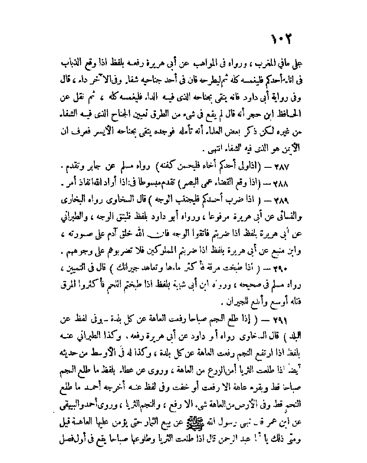 291 - إذا طلع النجمُ صباحا رفِعت العاهة عن كل بلدة - وفي لفظ عن البلد) قال السخاوي رواه أبو داود عن أبي هريرة رفعه، وكذا الطبراني عنه بلفظ إذا أرتفع النجم رفعت العاهة عن كل بلدة، وكذا له في الأوسط من حديثه أيضا إذا طلعت الثريا أمن الزرع من العاهة، وروي عن عطاء بلفظ ما طلع النجم صباحا قط وبقوم عاهة إلا رفعت أو خفت، وفي لفظ عنه أخرجه أحمد ما طلع النجم قط وفي الأرض من العاهة شئ إلا رفع، والنجم: الثريا، وروى أحمد والبيهقي عن ابن عمر قال نهى رسول الله صلى الله عليه وسلم عن بيع الثمار حتى يؤمن عليها العاهة قيل ومتى ذلك يا أبا عبد الرحمن قال إذا طلعت الثريا وطلوعها صباحا يقع في أول فصل