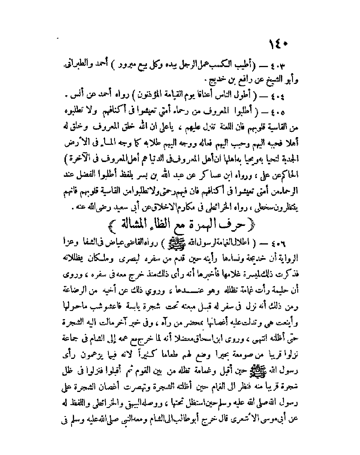 406 - (إظلال الغمامة لرسول الله صلى الله عليه وسلم) رواه القاضي عياض في الشفا وعزا الرواية أن خديجة ونساؤها رأينه حين قدم من سفره لبصرى وملكان يظللانه