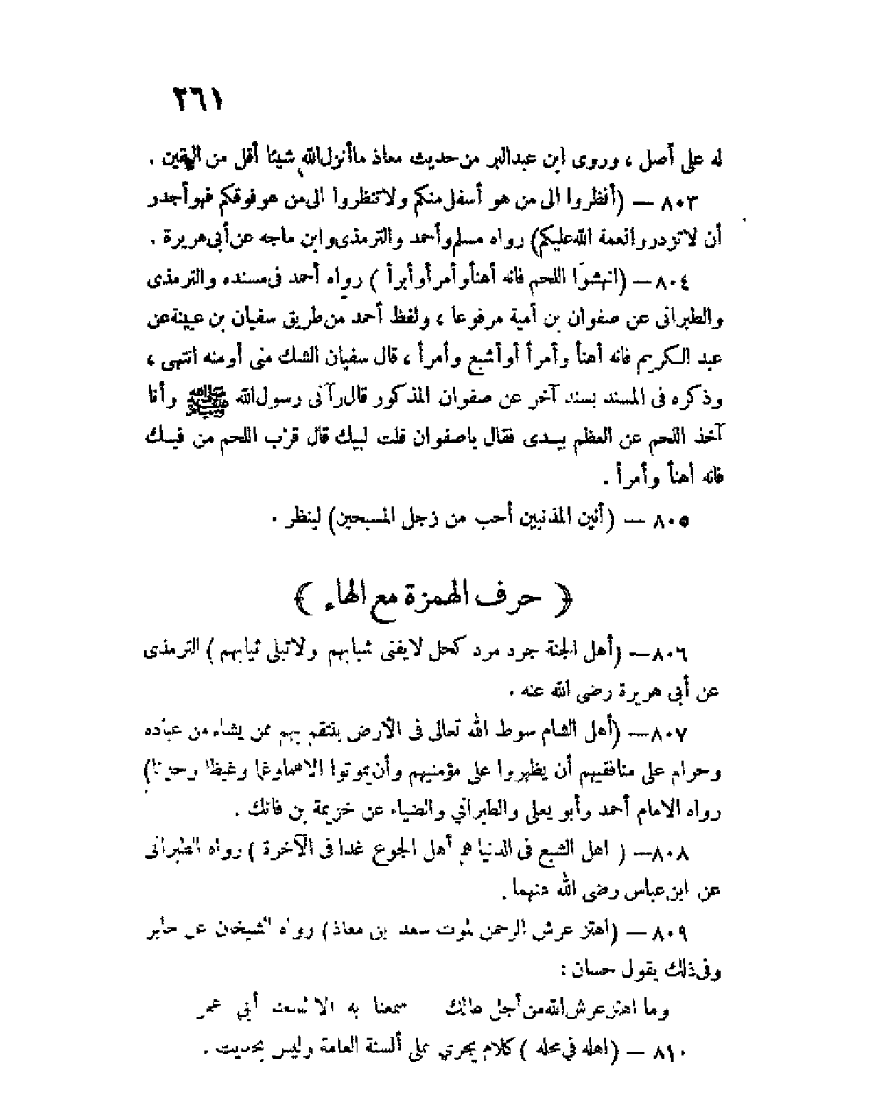 803 - (اُنظروا إلى من هو أسفل منكم ولا تنظروا إلى من هو فوقكم فهو أجدر أن لا تزدروا نعمة الله عليكم) رواه مسلم وأحمد والترمذي وابن ماجه عن أبي هريرة.