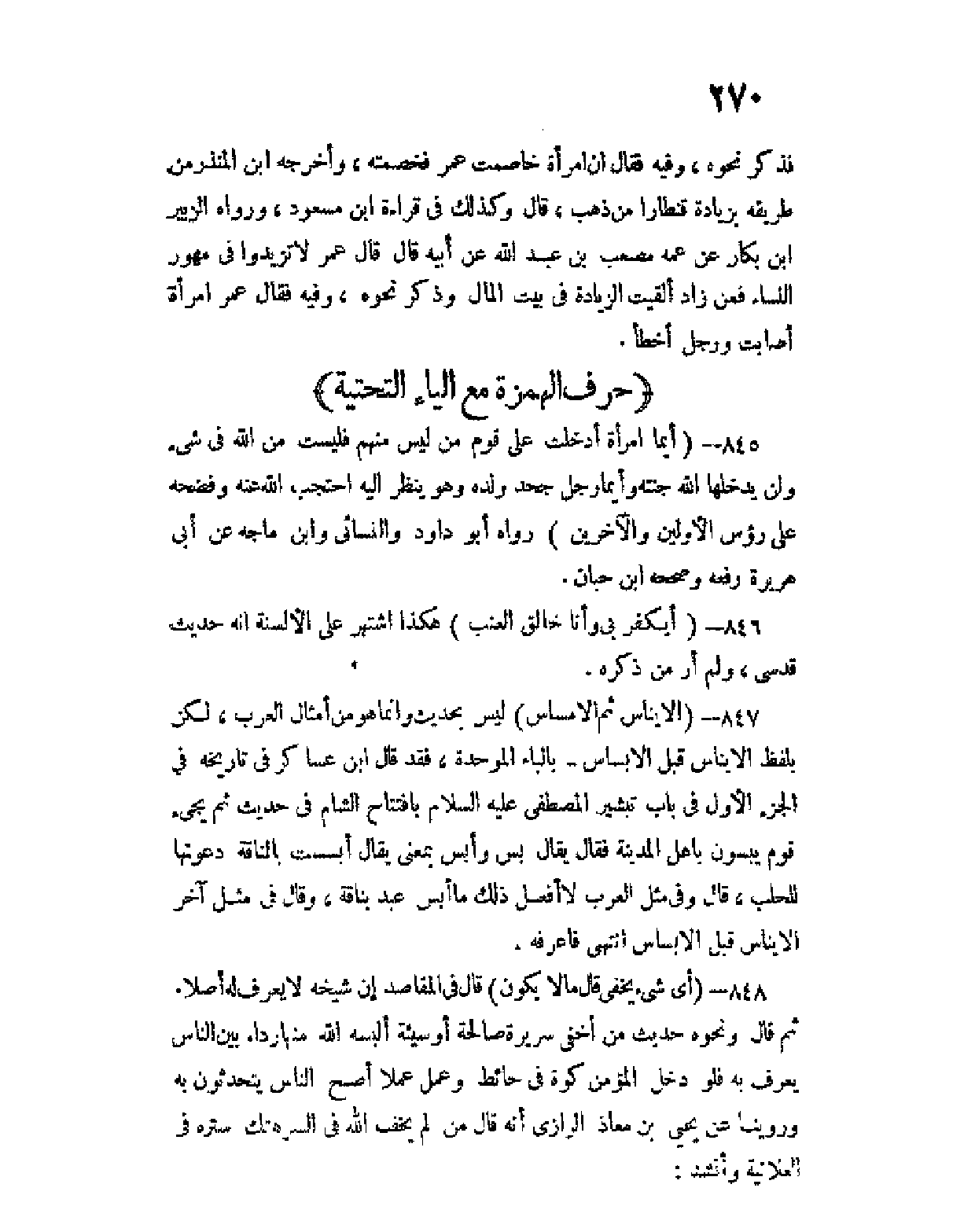 845 - (أيما امرأة أدخلت على قومٍ من ليس منهم فليستْ من الله في شئ ولن يُدَخلها الله جنتَه، وأيما رجل جحدَ ولدَه وهو ينظر إليه احتجب الله عنهُ وفضحه على رؤوس الأولين والآخرين) رواه أبو داود والنسائي وابن ماجه عن أبي هريرة رفعه وصححه ابن حبان.