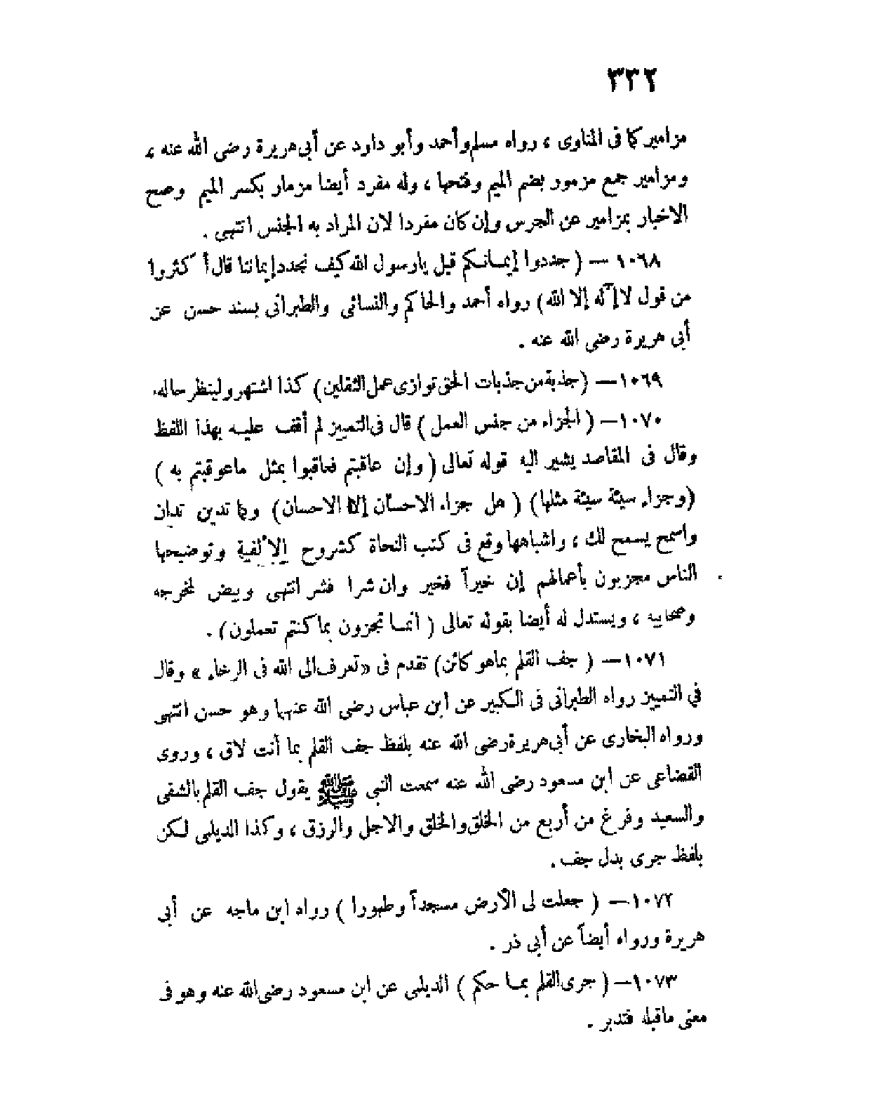 1073 - (جرى القلم بما حكم) الديلمي عن ابن مسعود رضي الله عنه، وهو في معنى ما قبله فتدبر.