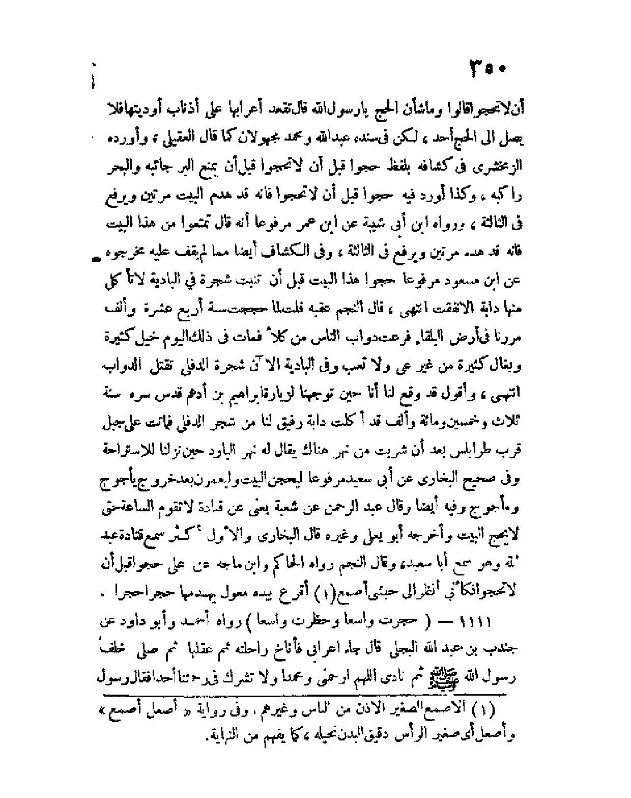 أن لا تحجوا قالوا وما شأن الحج يا رسول الله قال تقعد أعرابها على أذناب أوديتها فلا يصل إلى الحج أحد، لكن في سنده عبد الله ومحمد مجهولان كما قال العقيلي، وأورده الزمخشري في كشافه بلفظ حجوا قبل أن لا تحجوا قبل أن يمنع البر جائبه والبحر راكبه، وكذا أورد فيه حجوا قبل أن لا تحجوا فإنه قد هدم البيت مرتين ويرفع في الثالثة، ورواه ابن أبي شيبة عن ابن عمر مرفوعا أنه قال تمتعوا من هذا البيت فإنه قد يهدم مرتين ويرفع في الثالثة، وفي الكشاف أيضا مما لم يقف عليه مخرجوه عن ابن مسعود مرفوعا حجوا هذا البيت قبل أن تنبت شجرة في البادية لا تأكل منها دابة إلا نفقت انتهى، قال النجم عقبه قلت لما حججت سنة أربع عشرة وألف مررنا في أرض البلقاء فرعت دواب الناس من كلأ فمات في ذلك اليوم خيل كثيرة وبغال كثيرة من غير عي ولا تعب وفي البادية الآن شجرة الدفلى تقتل الدواب انتهى، وأقول وقد وقع لنا أنا حين توجهنا لزيارة إبراهيم بن أدهم قدس سره سنة ثلاث وخمسين ومائة وألف قد أكلت دابة رفيق لنا من شجر الدفلى فماتت على جبل قرب طرابلس بعد أن شربت من نهر هناك يقال له نهر البارد حين نزلنا للاستراحة وفي صحيح البخاري عن أبي سعيد مرفوعا ليحجن البيت وليعمرن بعد خروج يأجوج ومأجوج وفيه أيضا وقال عبد الرحمن عن شعبة يعني عن قتادة لا تقوم الساعة حتى لا يحج البيت وأخرجه أبو يعلى وغيره قال البخاري والأول أكثر سمع قتادة عبد الله وهو سمع أبا سعيد، وقال النجم رواه الحاكم وابن ماجه عن علي حجوا قبل أن لا تحجوا فكأني أنظر إلى حبشي أصمع (¬2) أقرع بيده معول يهدمها حجرا حجرا.