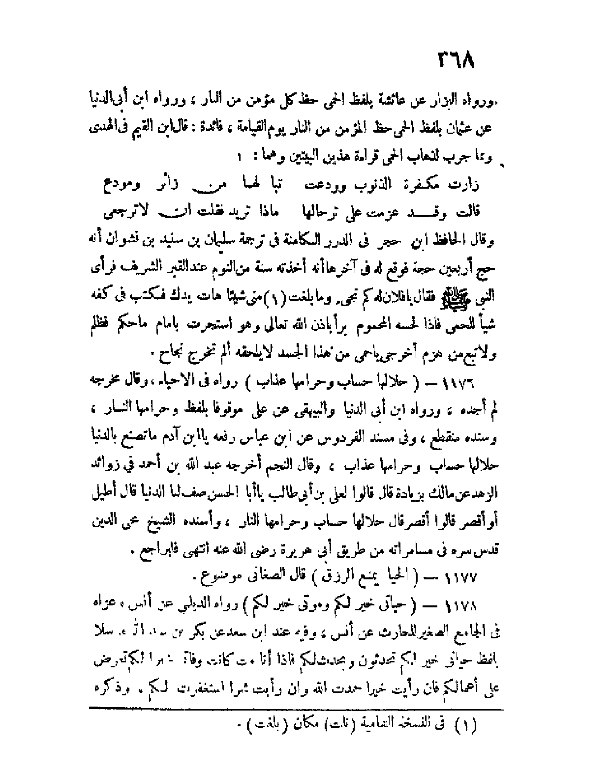 1178 - (حياتي خير لكم، وموتي خير لكم) رواه الديلمي عن أنس وعزاه في الجامع الصغير للحارث عن أنس، وفيه عند ابن سعد عن بكر بن عبد الله مرسلا