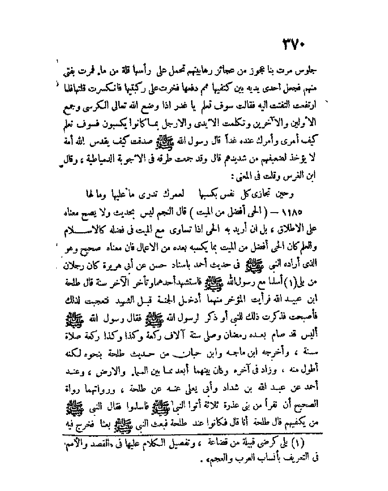 1185 - (الحي أفضل من الميت) قال النجم ليس بحديث، ولا يصح معناه على الإطلاق، بل إن أريد به الحي إذا تساوى مع الميت في فضله كالإسلام والعلم كان الحي أفضل من الميت بما يكسبه بعده من الأعمال فإن معناه صحيح، وهو الذي أراده النبي صلى الله عليه وسلم في حديث أحمد بإسناد حسن عن أبي هريرة كان رجلان من بلى (¬1) أسلما مع رسول الله صلى الله عليه وسلم فاستشهد أحدهما، وتأخر الآخر سنة، قال طلحة ابن عبيد فرأيت المؤخر منهما أدخل الجنة قبل الشهيد، فتعجبت لذلك فأصبحت فذكرت ذلك للنبي أو ذكر لرسول الله صلى الله عليه وسلم فقال رسول الله صلى الله عليه وسلم أليس قد صام بعده رمضان، وصلى ستة آلاف ركعة، وكذا وكذا ركعة صلاة سنة، وأخرجه ابن ماجه وابن حبان من حديث طلحة بنحوه لكنه أطول منه، وزاد في آخره وكان بينهما أبعد مما بين السماء والأرض، وعند أحمد عن عبد الله بن شداد وأبي يعلى عنه عن طلحة، ورواتهما رواة الصحيح أن نفرا من بني عذرة ثلاثة أتوا النبي صلى الله عليه وسلم فأسلموا، فقال النبي صلى الله عليه وسلم من يكفيهم، قال طلحة أنا، قال فكانوا عند طلحة، فبعث النبي صلى الله عليه وسلم بعثا، فخرج فيه