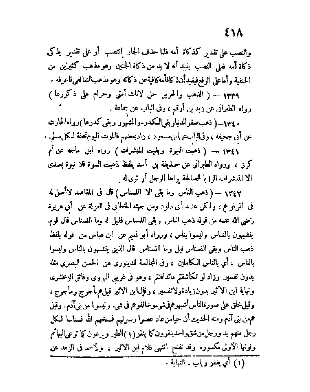 1339 - (الذهب والحرير حل لإناث أمتي وحرام على ذكورها) رواه الطبراني عن زيد بن أرقم، وفي الباب عن جماعة.
