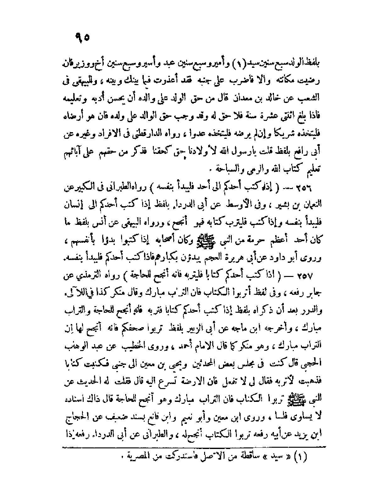 257 - (إذا كتب أحدكم كتاباً فلْيُتَرّبه فإنه أنجح للحاجة) رواه الترمذي عن
