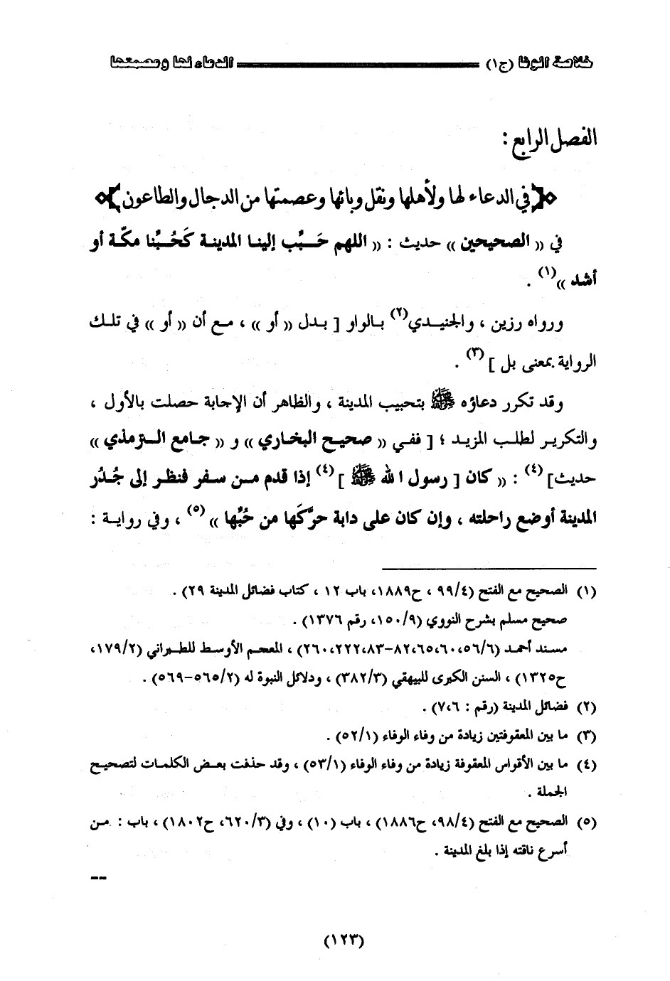 " الفصل الرابع " في الدعاء لها ولأهلها ونقل وباءها وعصمتها من الدجال والطاعون