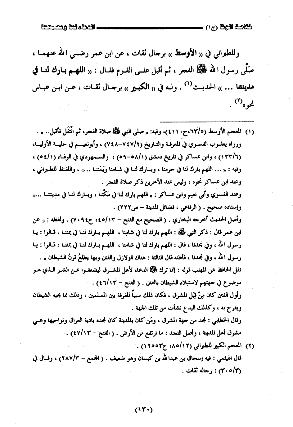 وللطبراني في الأوسط برجال ثقاة عن ابن عمر رضي الله عنه صلى رسول الله صلى الله عليه وسلم الفجر ثم أقبل على القوم فقال اللهم بارك لنا في مدينتنا الحديث وله في الكبير برجال ثقاة عن أبن عباس نحوه