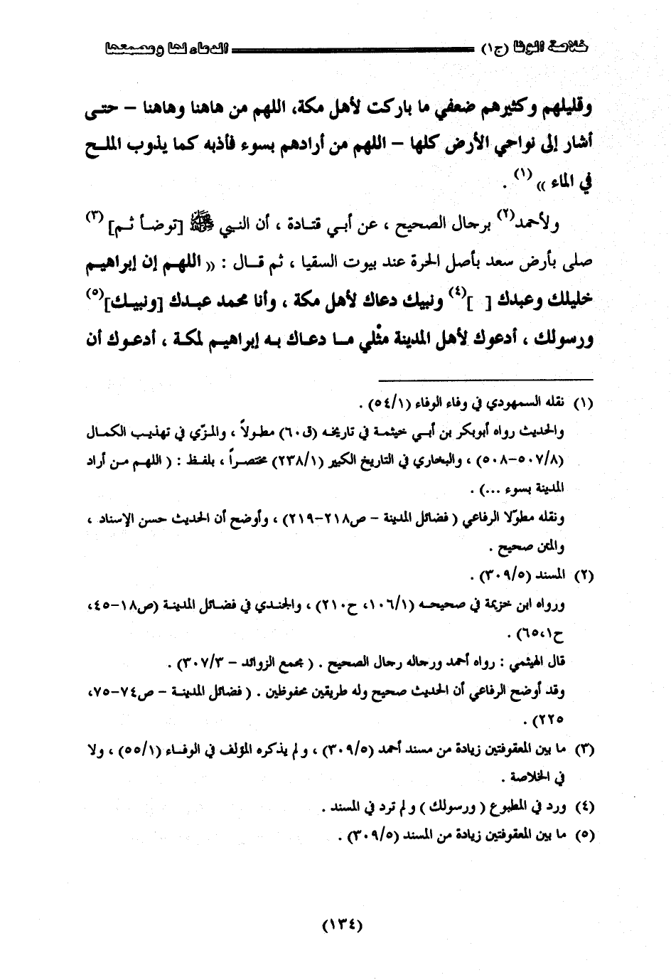 وقليلهم وكثيرهم ضعفي ما باركت لأهل مكة اللهم من ها هنا وها هنا وها هنا حتى أشار إلى نواحي الأرض كلها اللهم من أرادهم بسوء فأذيه كما يذوب الملح بالماء ولأحمد برجال الصحيح عن أبي قتادته أن النبي صلى الله عليه وسلم صلى بأرض سعد بأصل الحرة عند بيوت السقيا ثم قال اللهم أن إبراهيم خليلك وعبدك ورسولك ونبيك دعاك لأهل مكة وأنا محمد عبدك ورسولك أدعوك لأهل المدينة مثلما دعاك به إبراهيم لمكة أدعوك أن