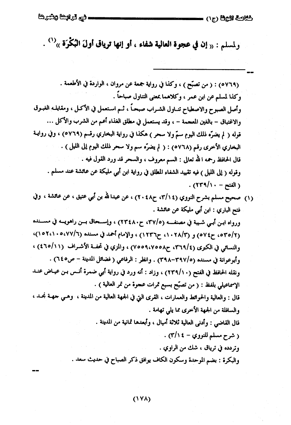 ولمسلم أن في عجوة العالية شفاء أو إنها ترياق أوّل البكرة