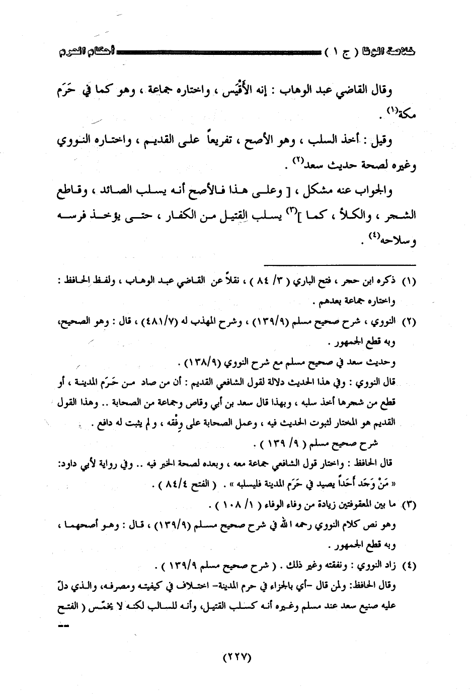 وقال القاضي عبد الوهاب أنه إلا قيس وأختاره النووي وغيره لصحة حديث سعد والجواب عنه مشكل ويسلب كالقتيل من الكفار حتى يؤخذ فرسه وسلاحه