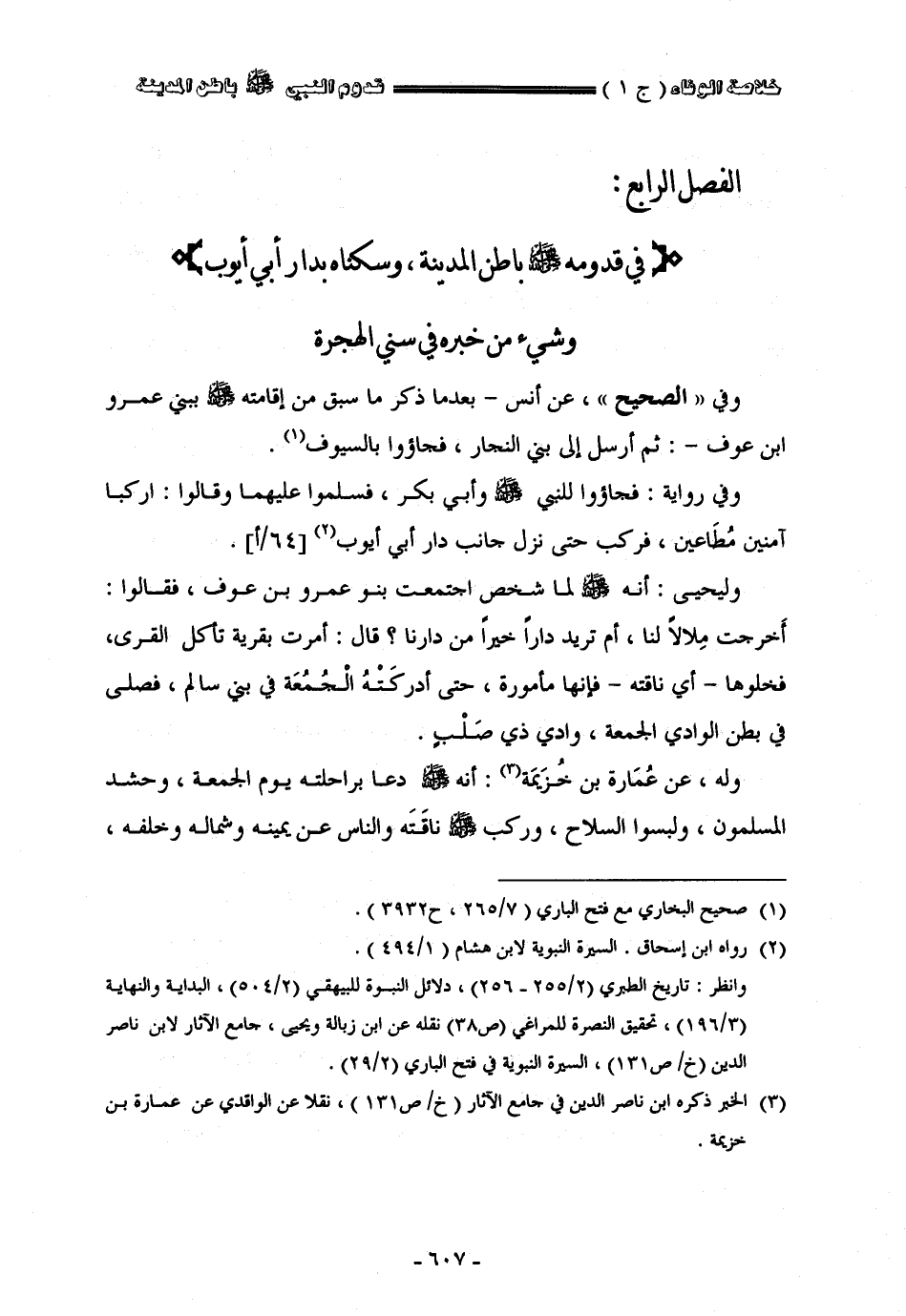 " الفصل الرابع " في قدومه صلى الله عليه وسلم باطن المدينة وسكناه بدار أبي أيوب وشيء من خبره في سنين الهجرة