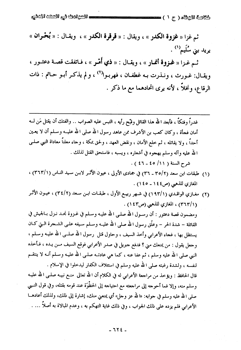 ثم غزا غزوة الكدر ويقال قرقرة الكدر ويقال نجران يريد بني سليم. ثم غزا غزوة أنمار ويقال ذي أمر فاتفقت قصة دعثور ويقال غورث ونذرت به غطفان فهو بواو لم يذكر أبو حاتم ذات الرقاع ونخلا لأنه يرى اتحادهما مع ذكر.